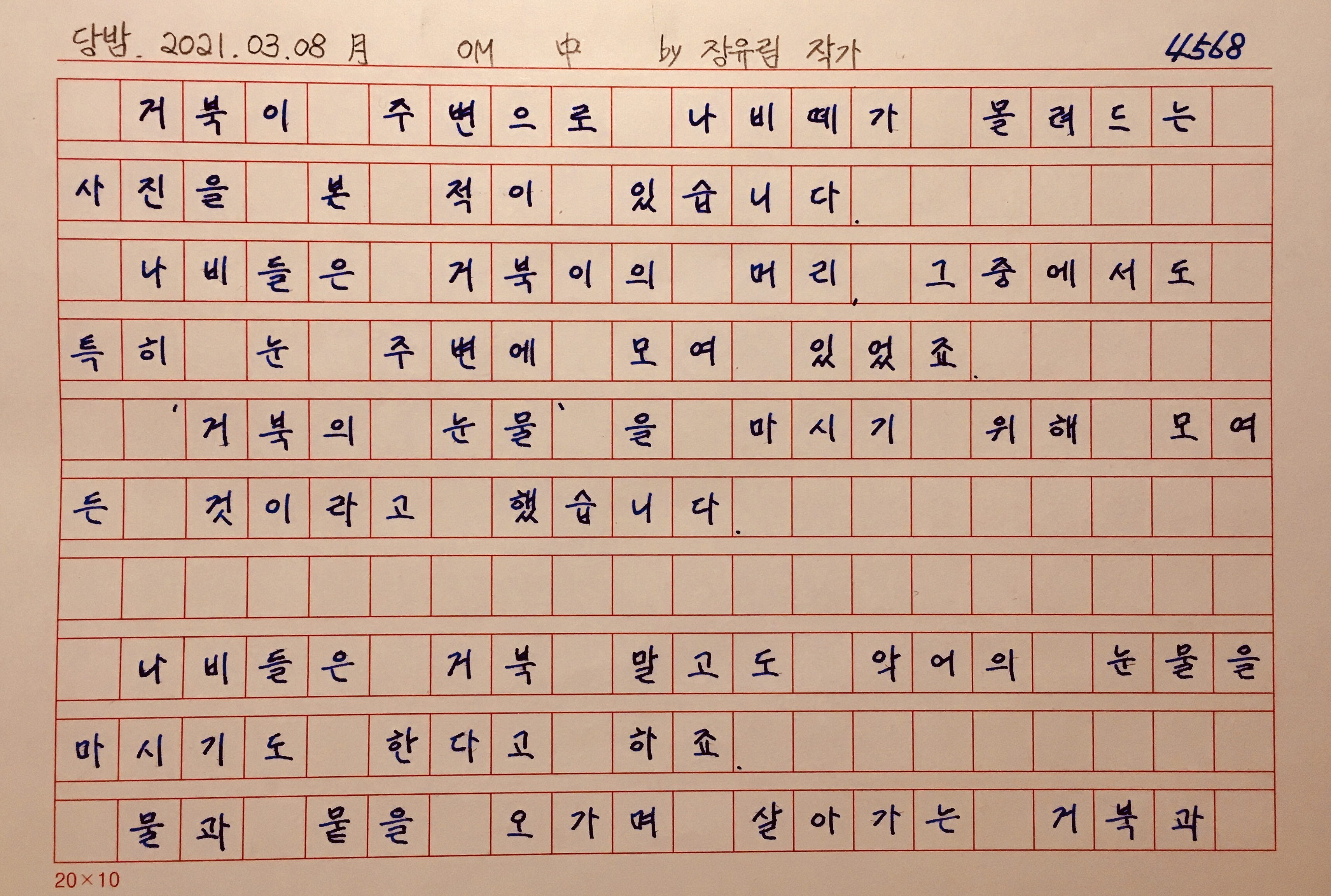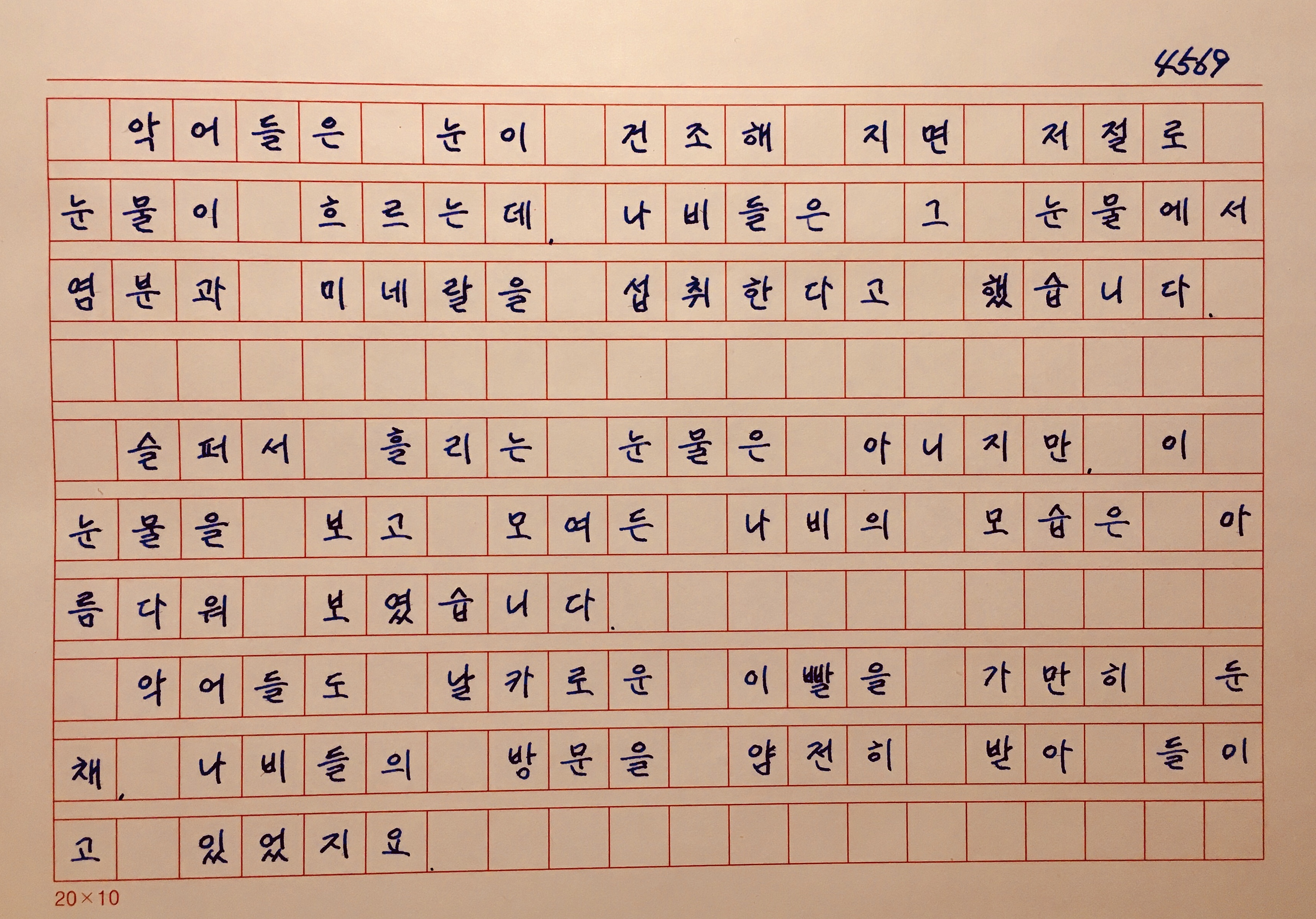 나비에게 눈물을 내어주는 거북과 악어의 모습에서 이런 의문이 떠올랐습니다."