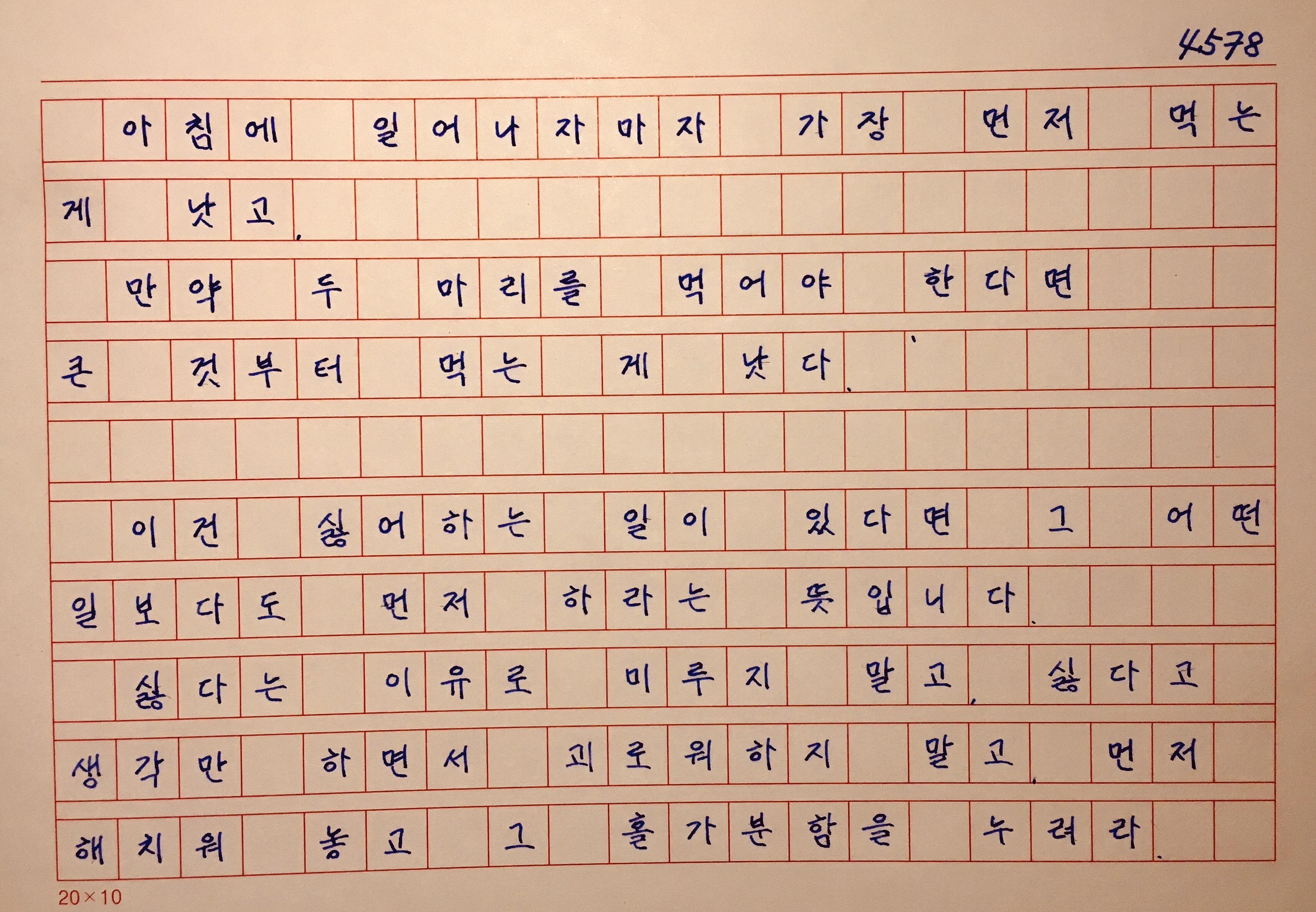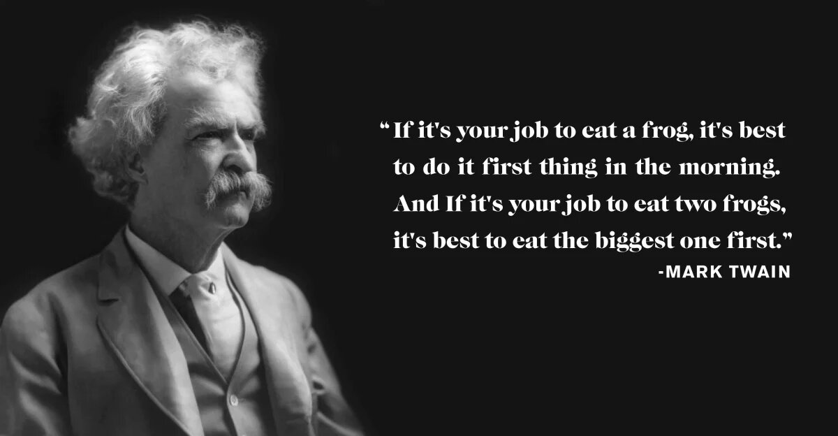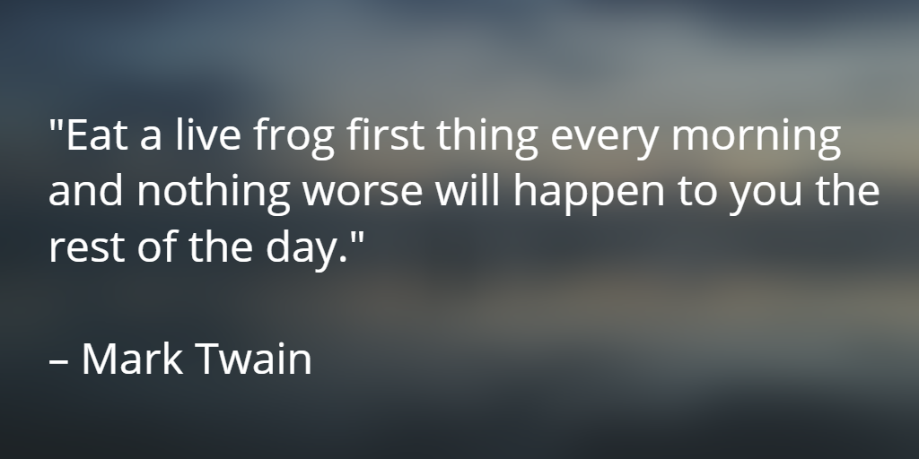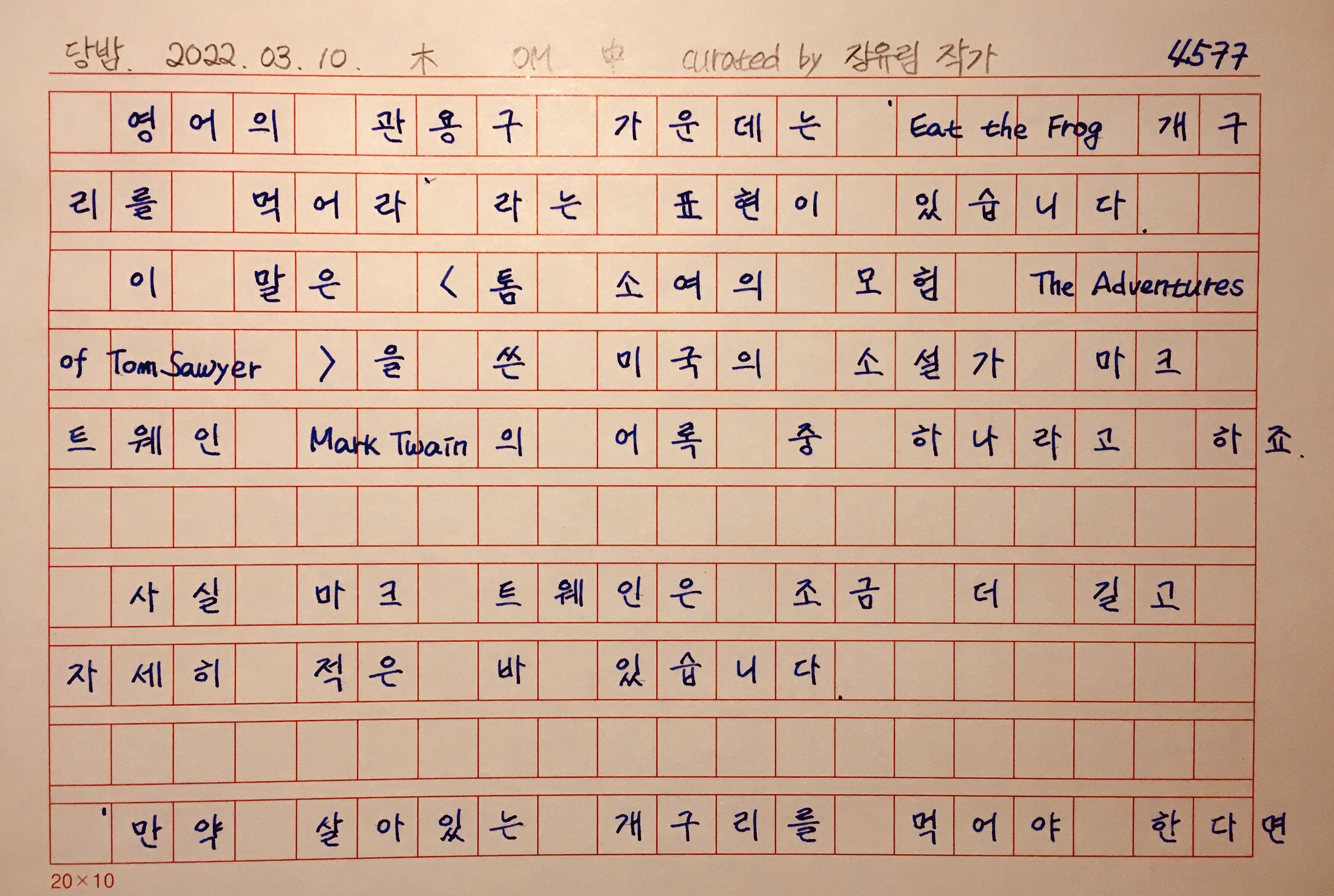 "오늘 하루가 어쩐지 수월치 않았다면 개구리 먹기를 가장 나중까지 미루었기 때문일 수도 있겠죠.