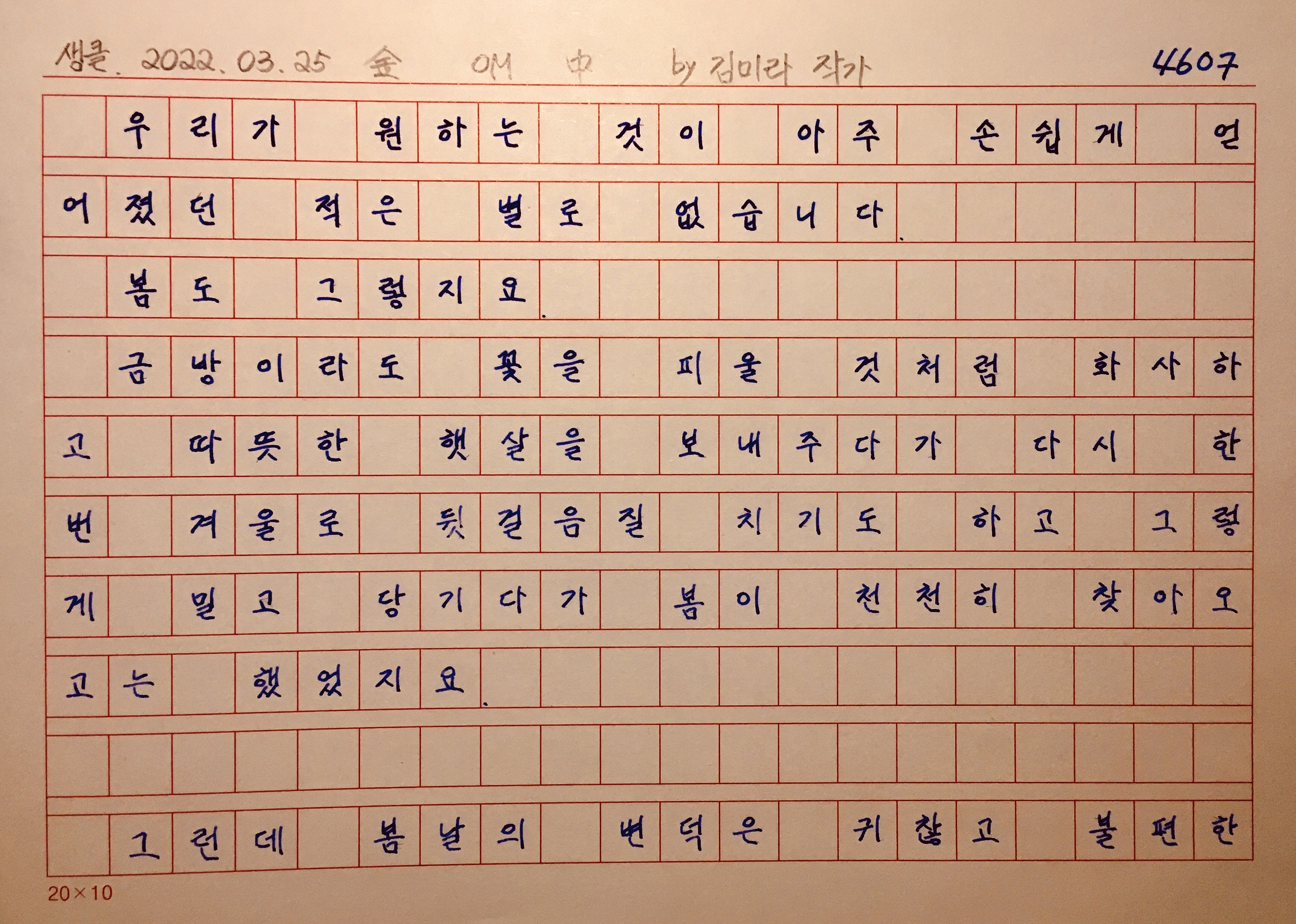 당분간은 봄날의 변덕을 잘 견뎌야 하지 않을까 생각해 봅니다."