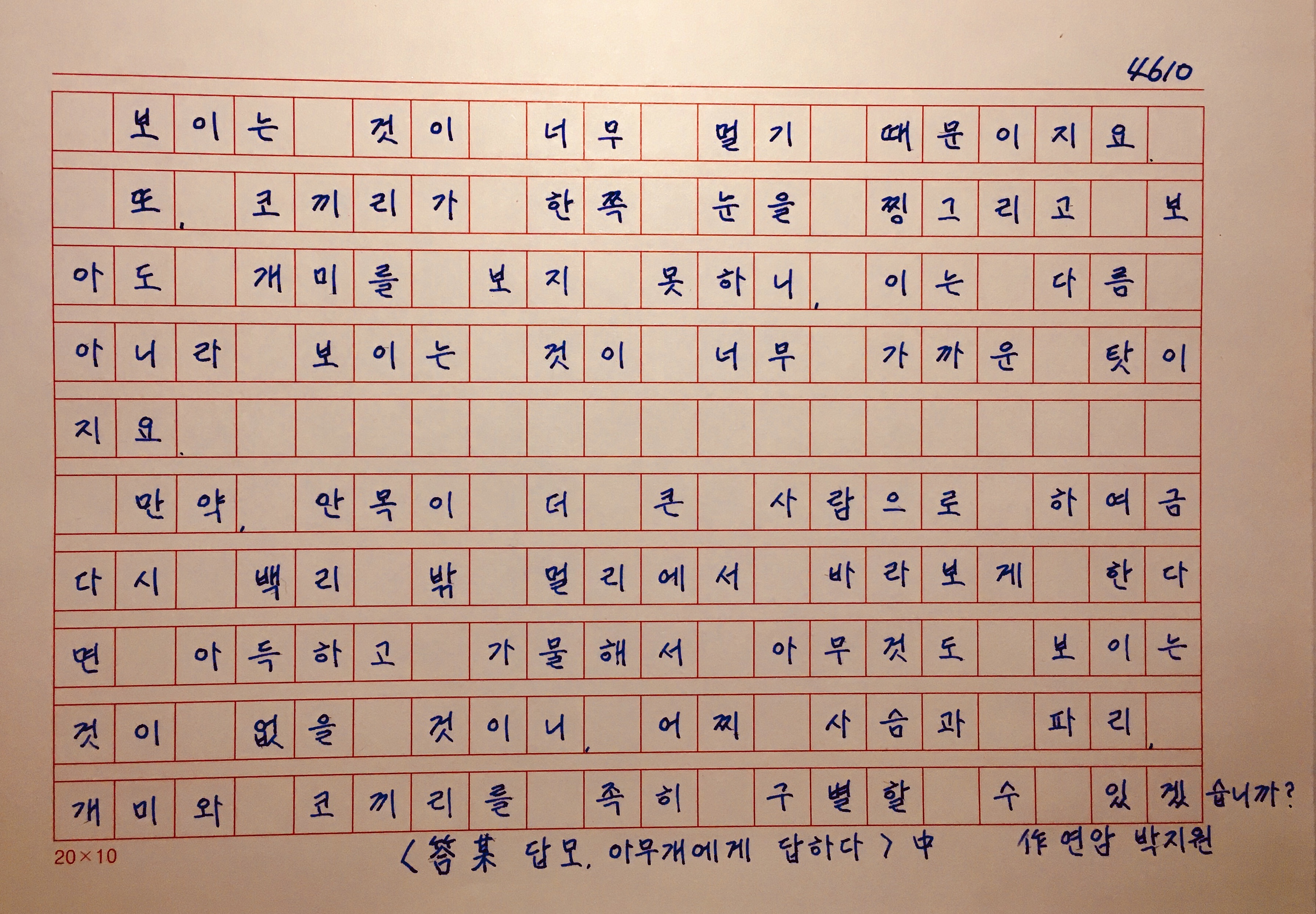 개미는 그곳을 수시로 들락거리면서도 코끼리를 보지 못했습니다.