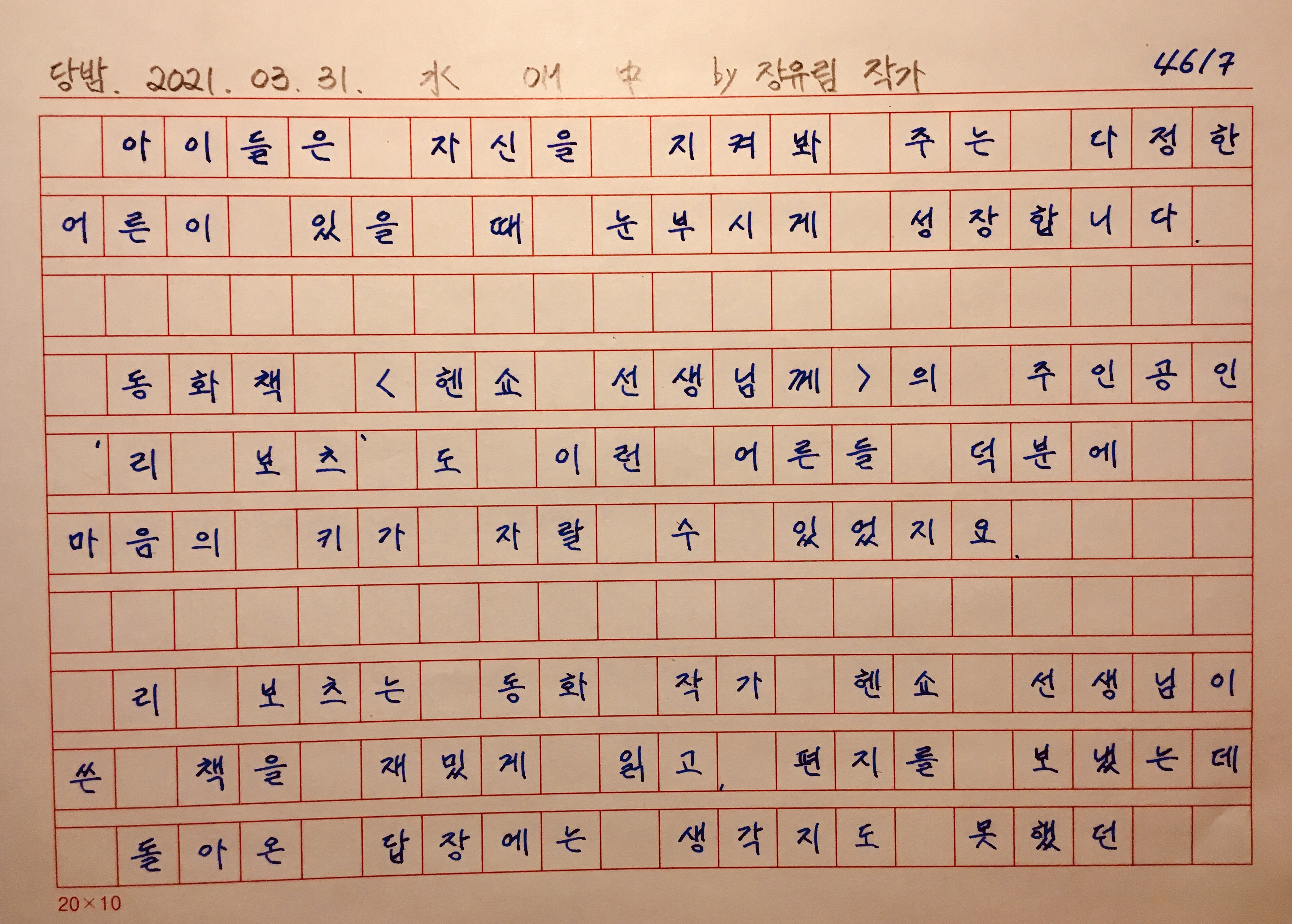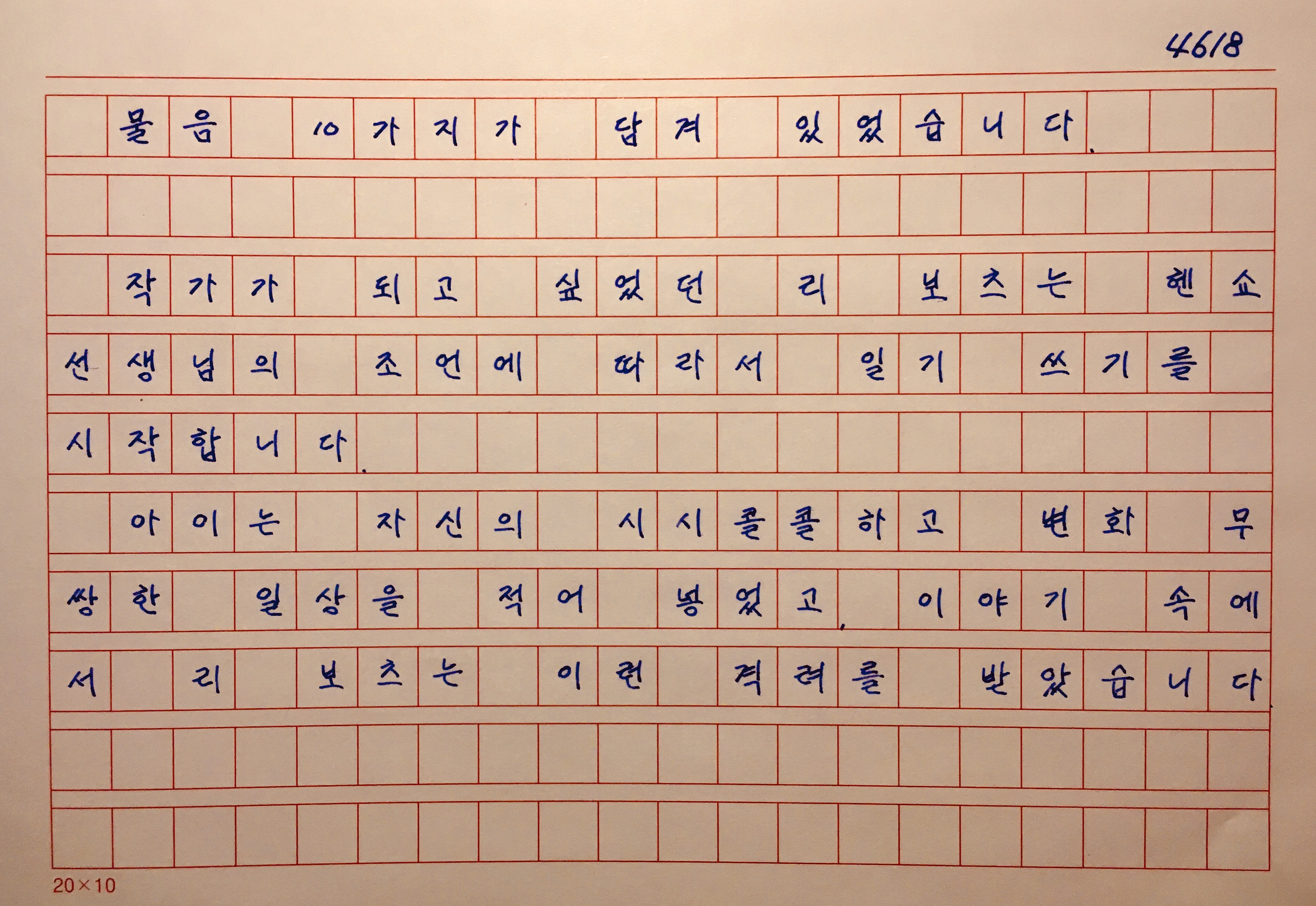 그것이 바로 네가 좋은 작가가 될 수 있다는 증거야. 앞으로도 노력하렴."