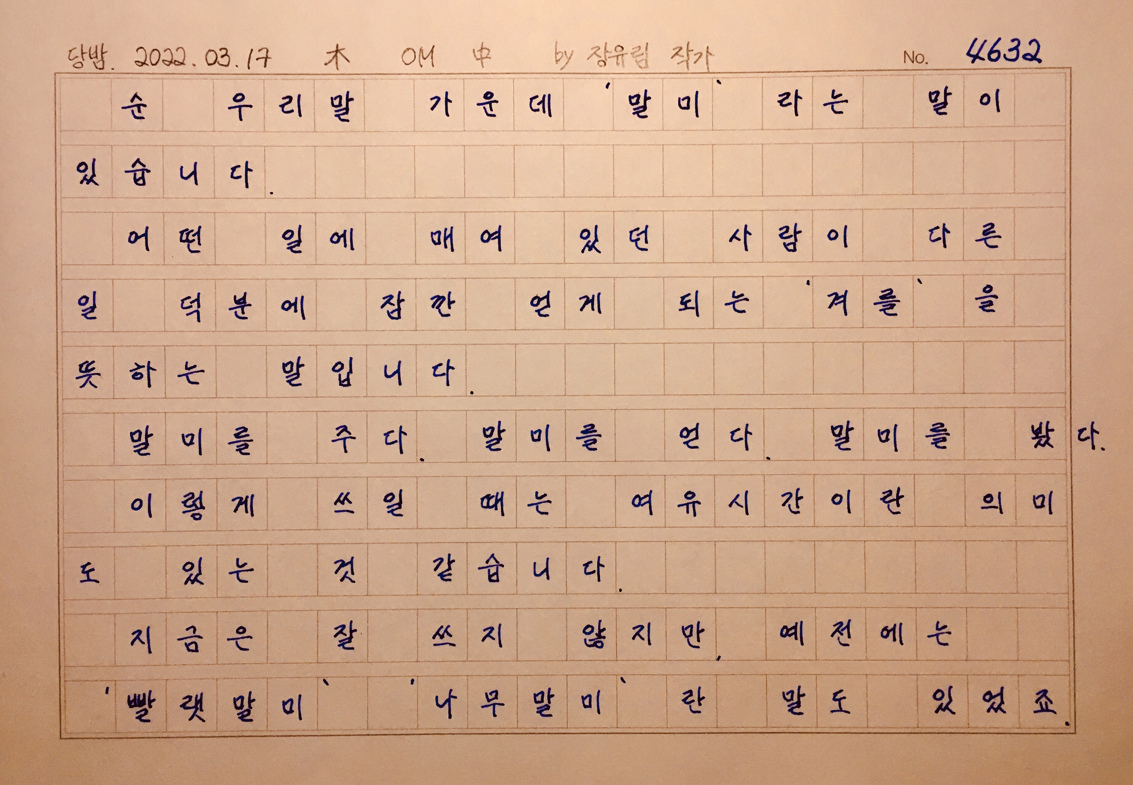 "오늘의 일과 내일의 일 사이 손을 잠깐 놓아도 괜찮은 밤 시간대는 우리에게 주어진 말미입니다.