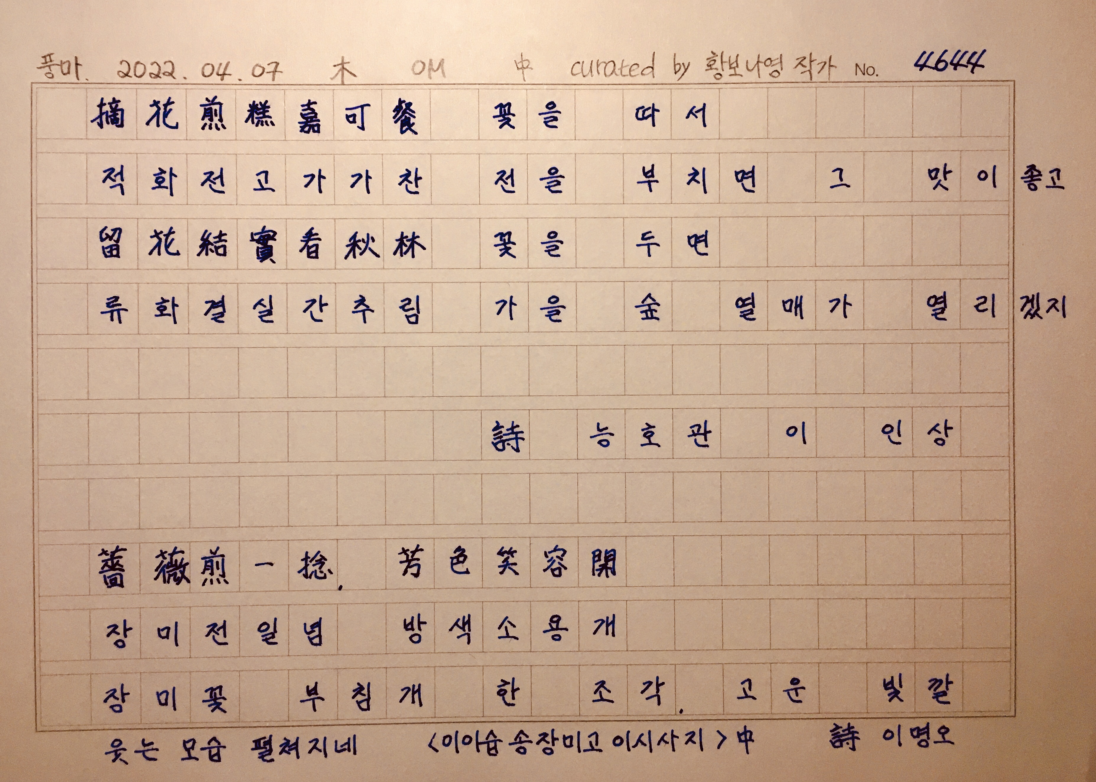 "배꽃을 보면서 쓴 시라고 합니다.