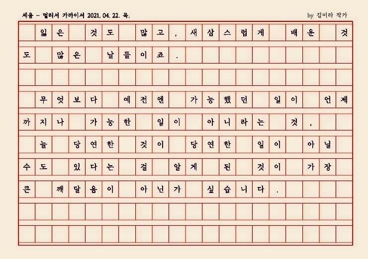 당연하고도 소중했던 것들을 자주 기억해야겠다는 생각도 해봅니다."