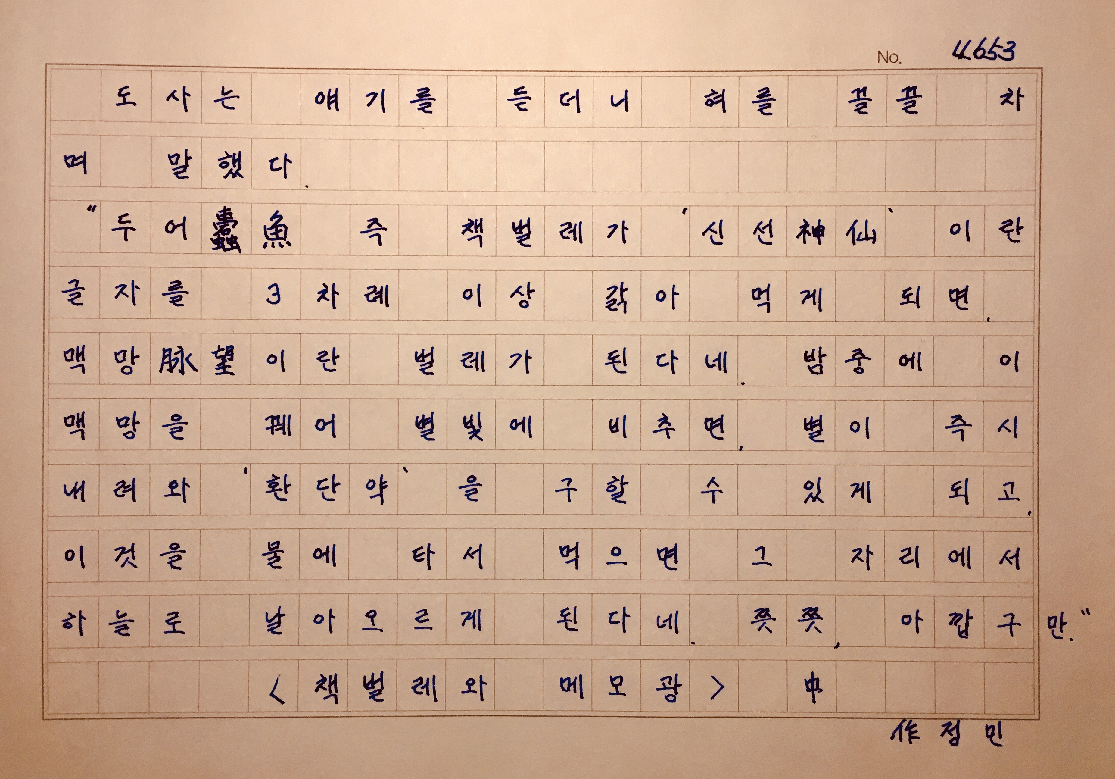 두어 蠹魚 (책벌레) 가 신선 선仙자를 세 번 갉아 먹으면 이 벌레로 변한다는 겁니다.