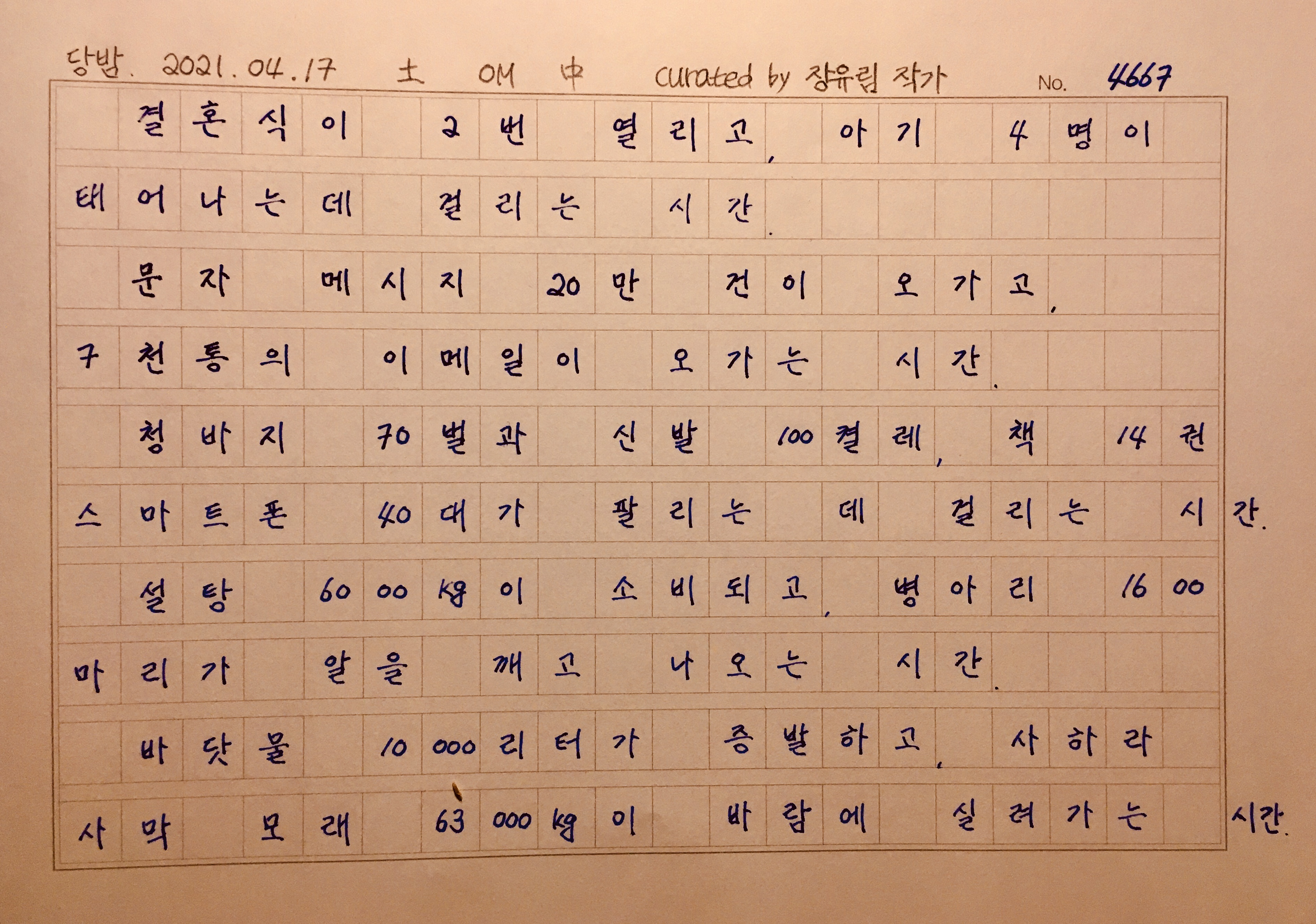 1초라는 짧은 시간 안에 세계에서 일어나는 갖가지 사건들을 우리는