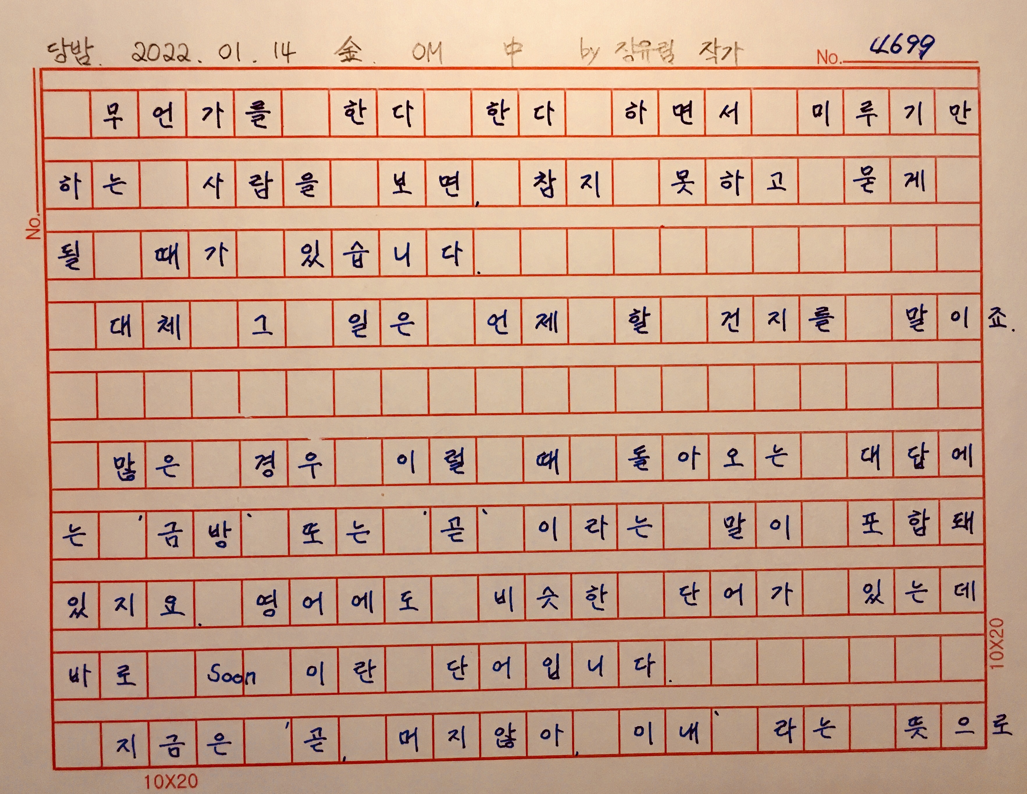"뭔가를 조금이라도 더 미루고 싶어 하는 마음은 인류의 유구한 전통인가 봅니다.