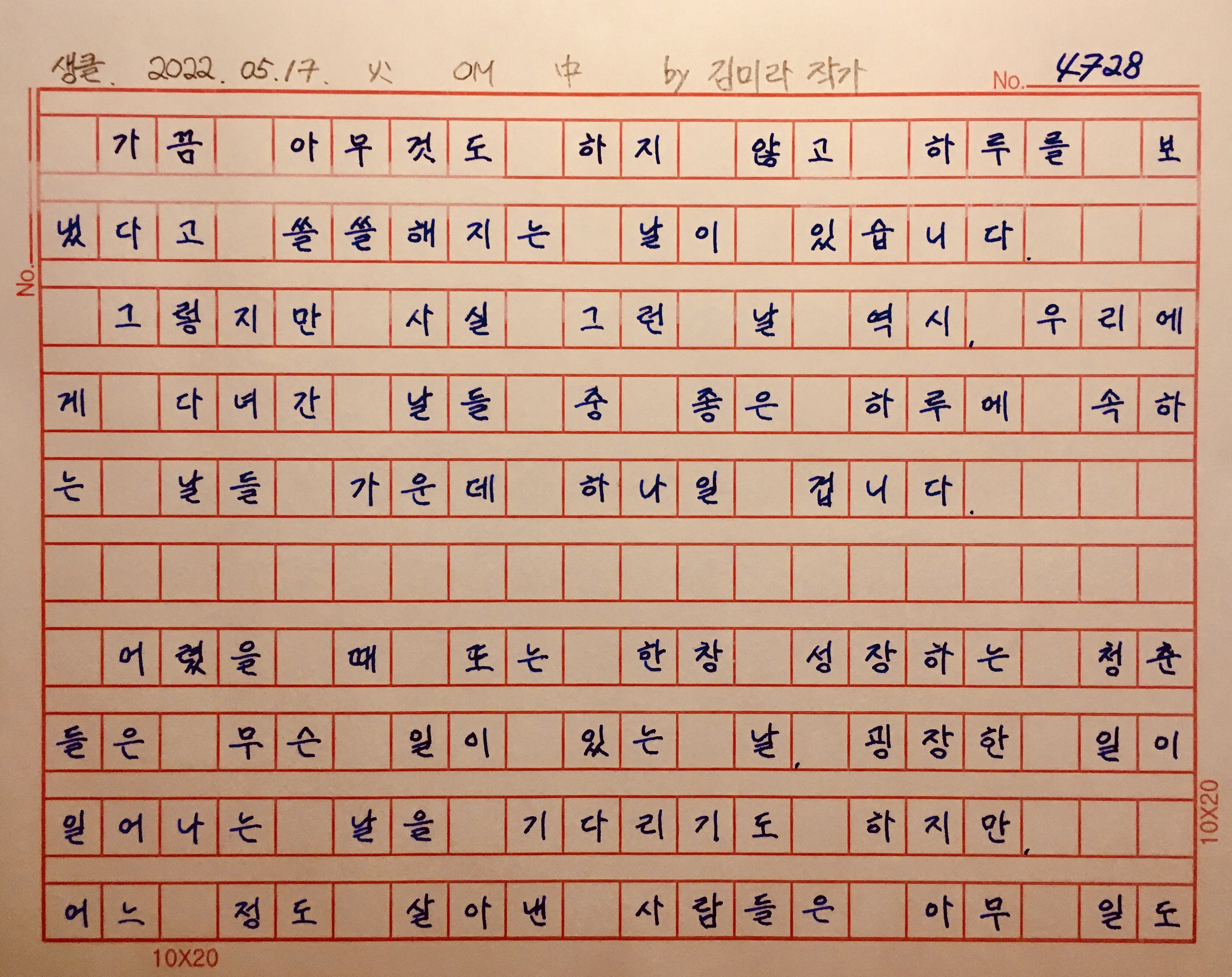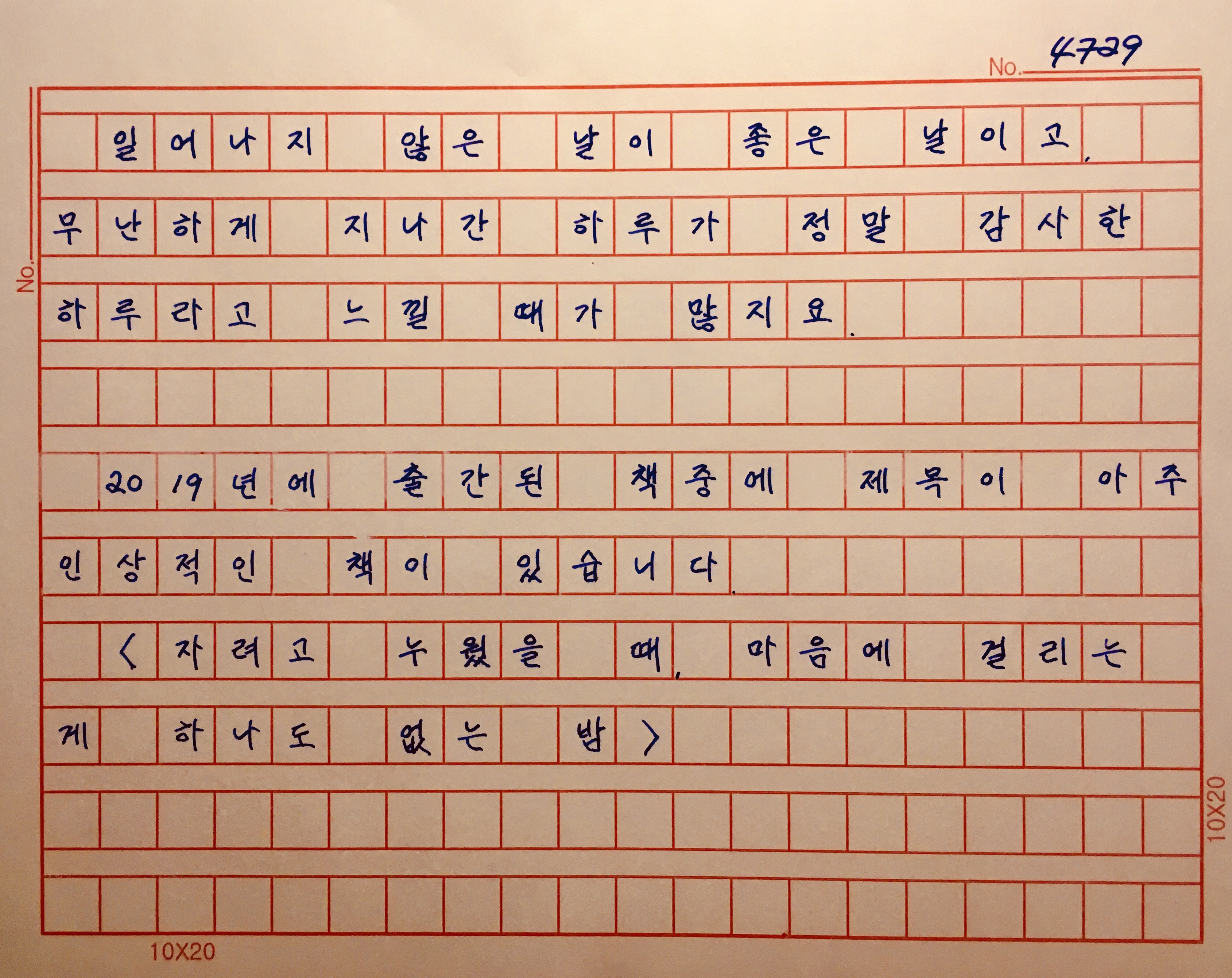 그래서 오늘 밤에 자려고 누웠을 때, 마음에 걸리는 게 하나도 없는 그런 하루가 만들어지면 좋겠습니다.