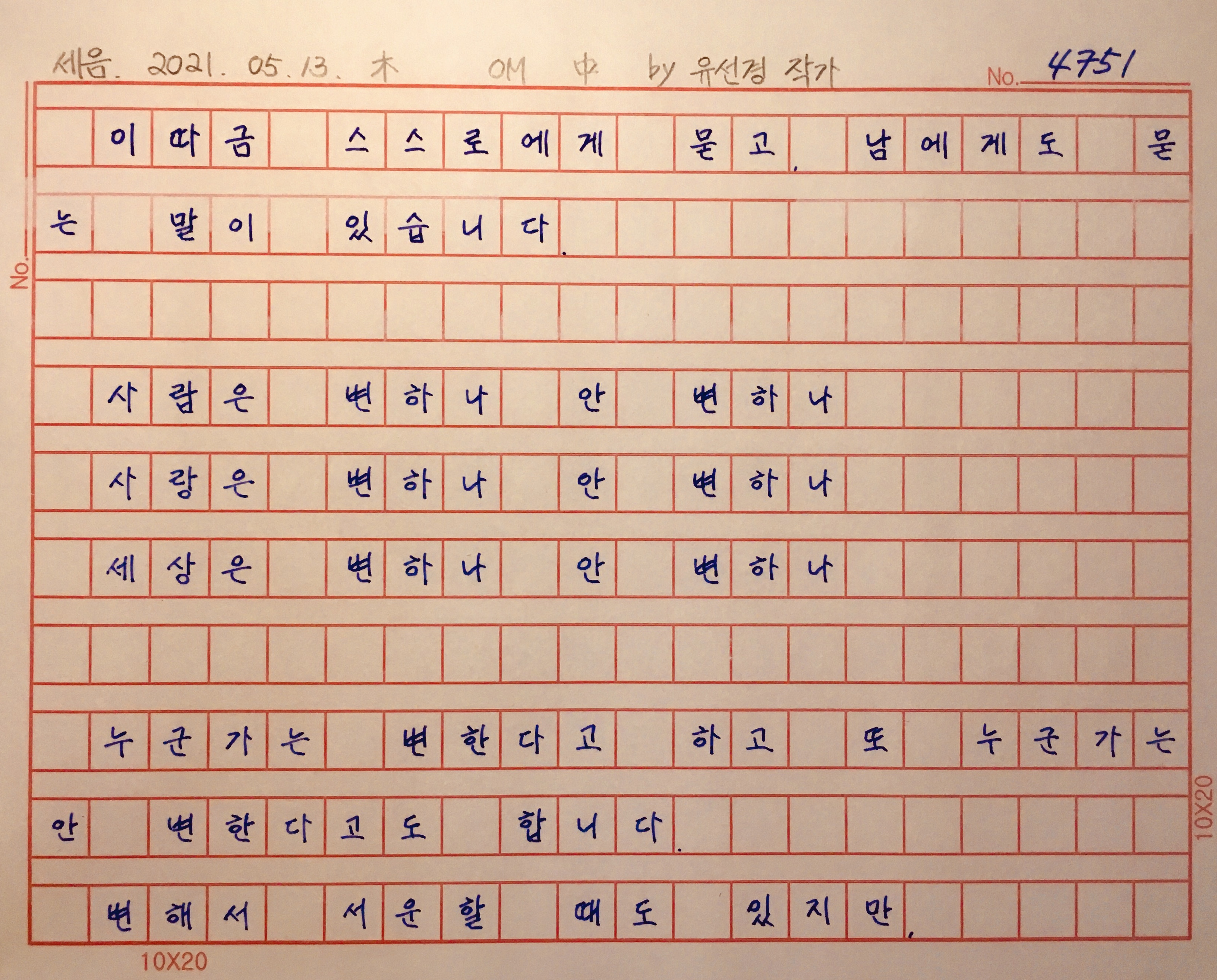 ♬ 정수은 사 임수연 곡 - "다섯 글자 예쁜 말"