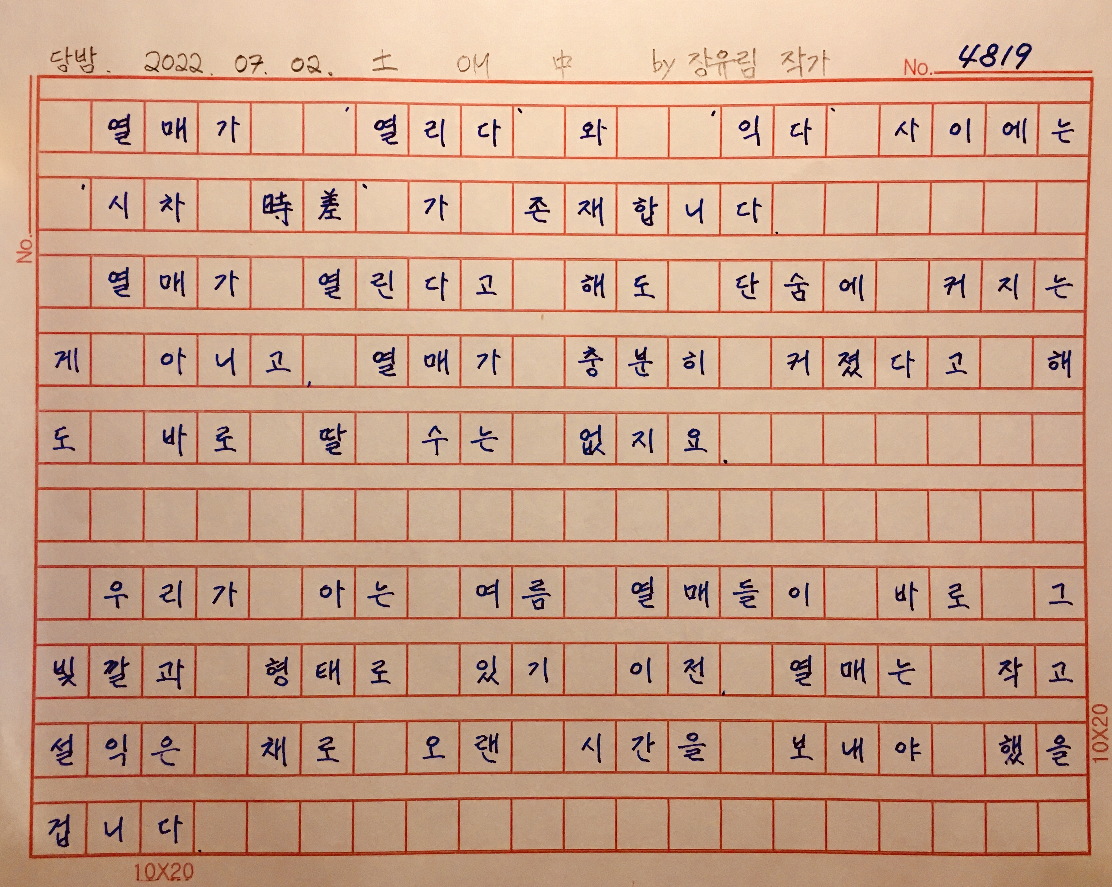 그 어떤 열매도 시간의 경과 없이는 자신의 설익음을 지울 수 없을 겁니다."