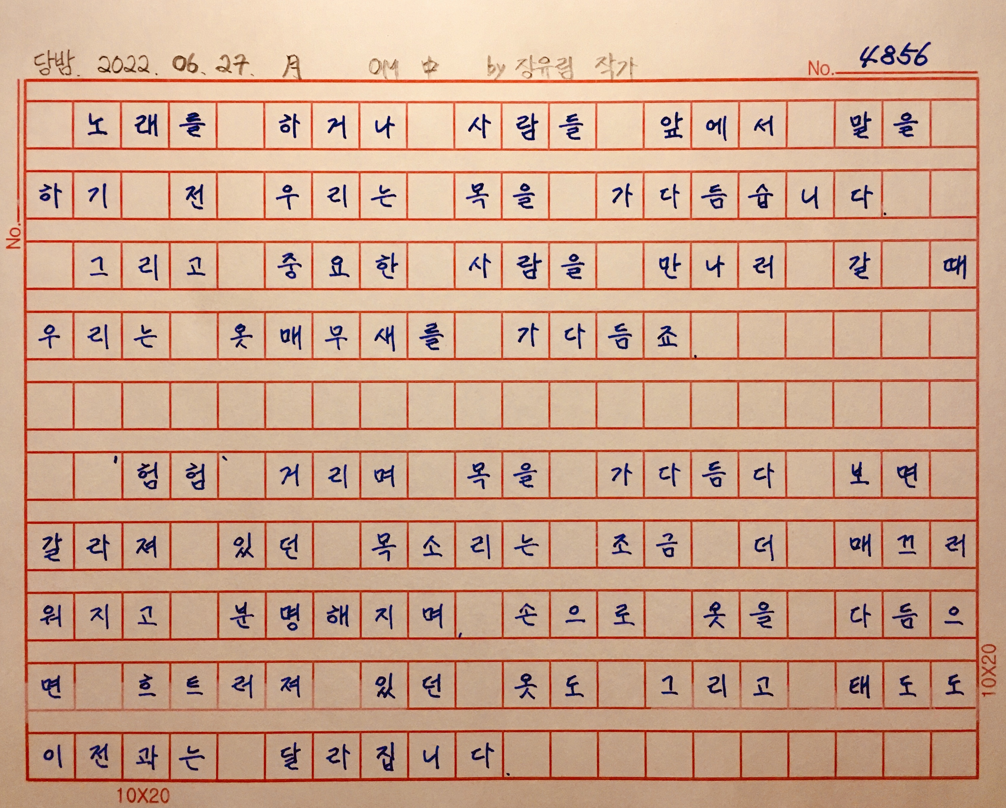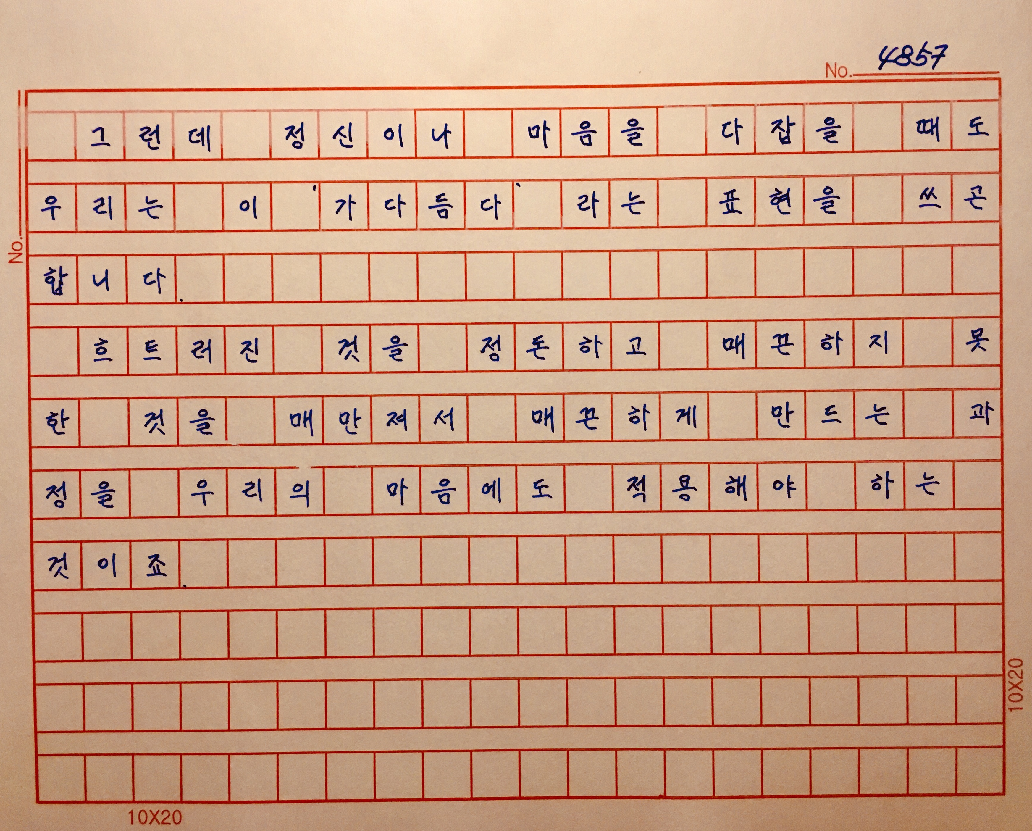 옷매무새를 바로잡듯이 온 마음을 끌어다 조용히 가다듬어 봅니다."