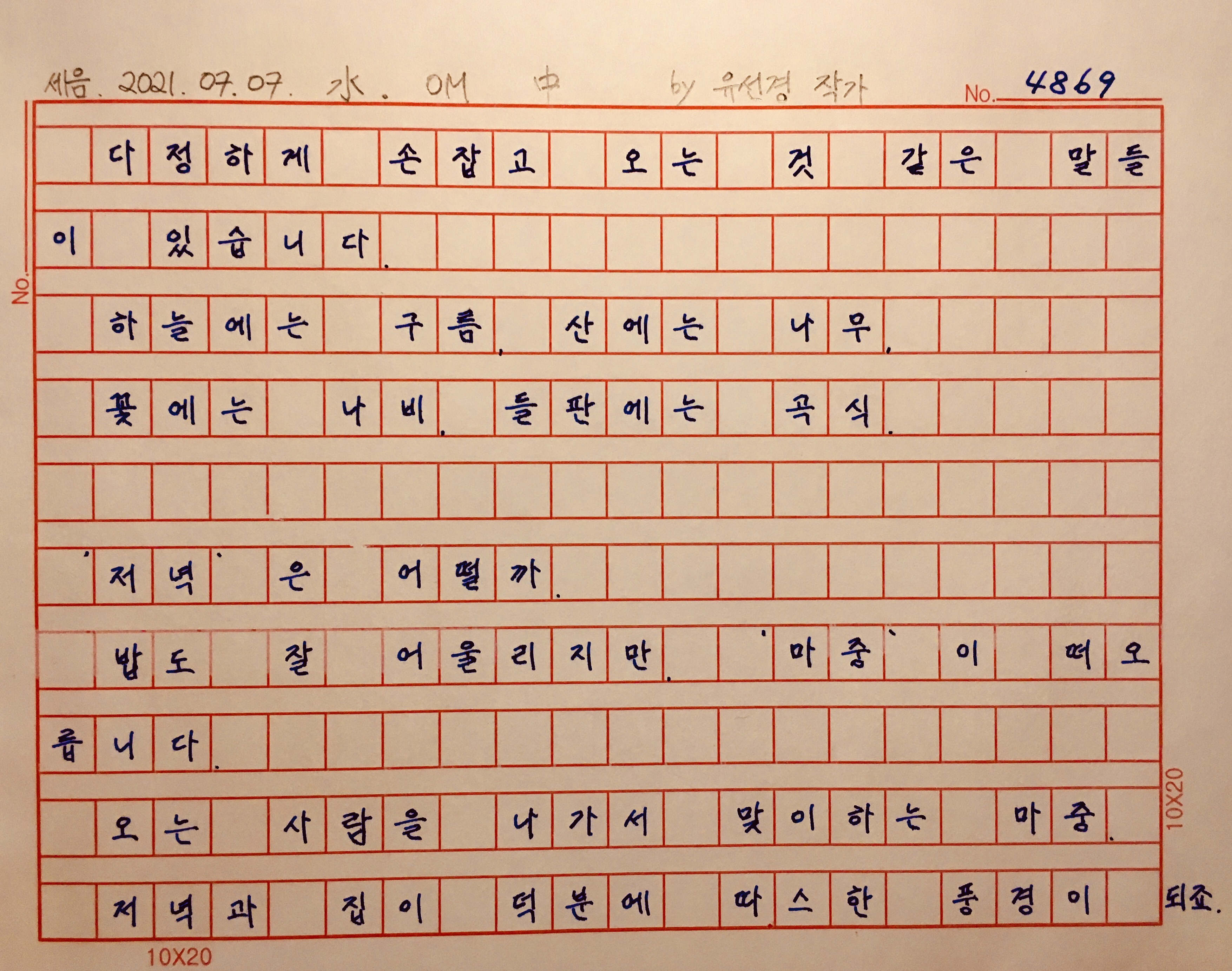 매일 똑같은 풍경이라고 하지만 늘 같은 장소에서 나를 기다리는 이가 있고,