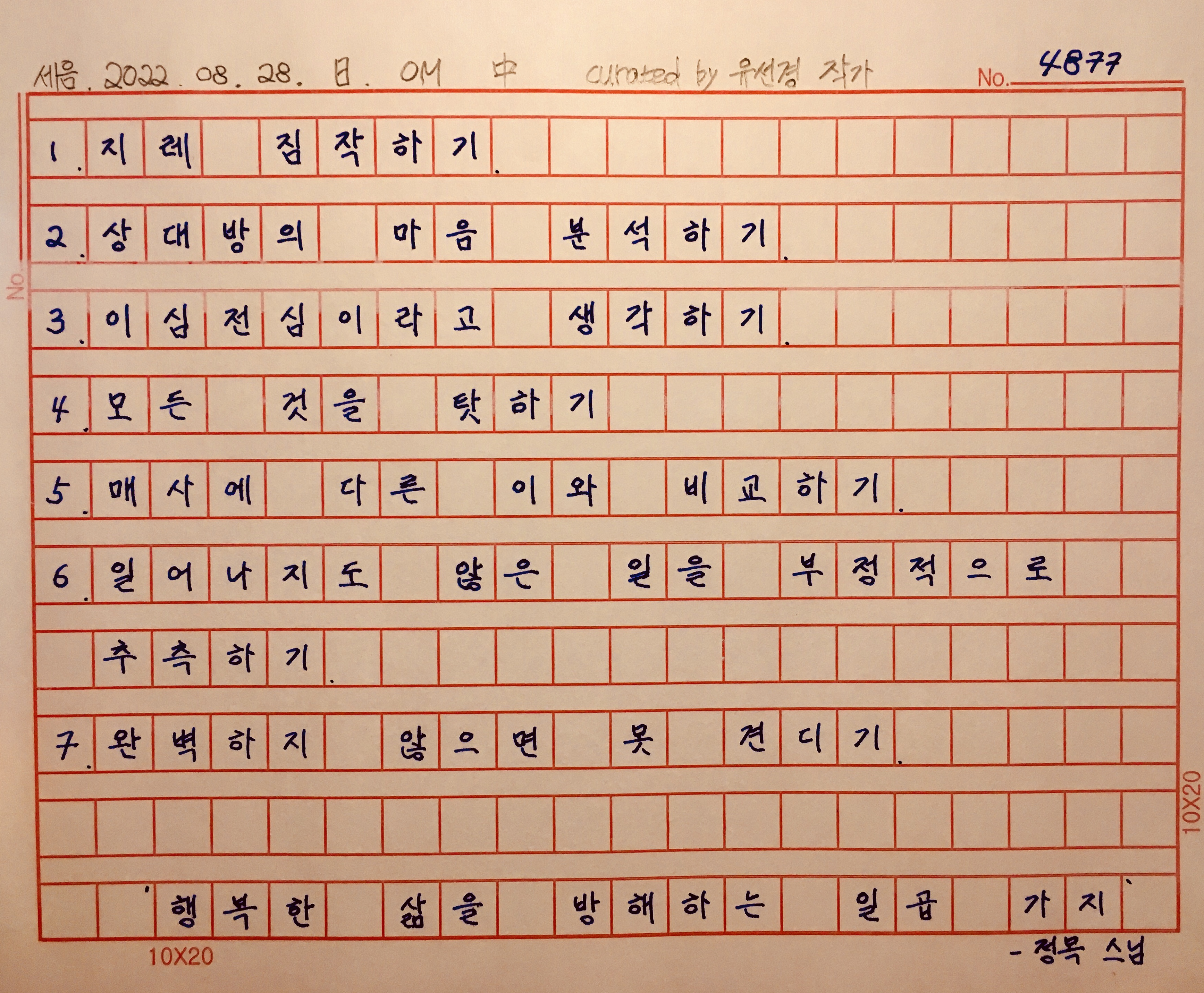 이렇게 잡념이 많으면 행복 이라든가 즐거움이 들어오고 싶어도