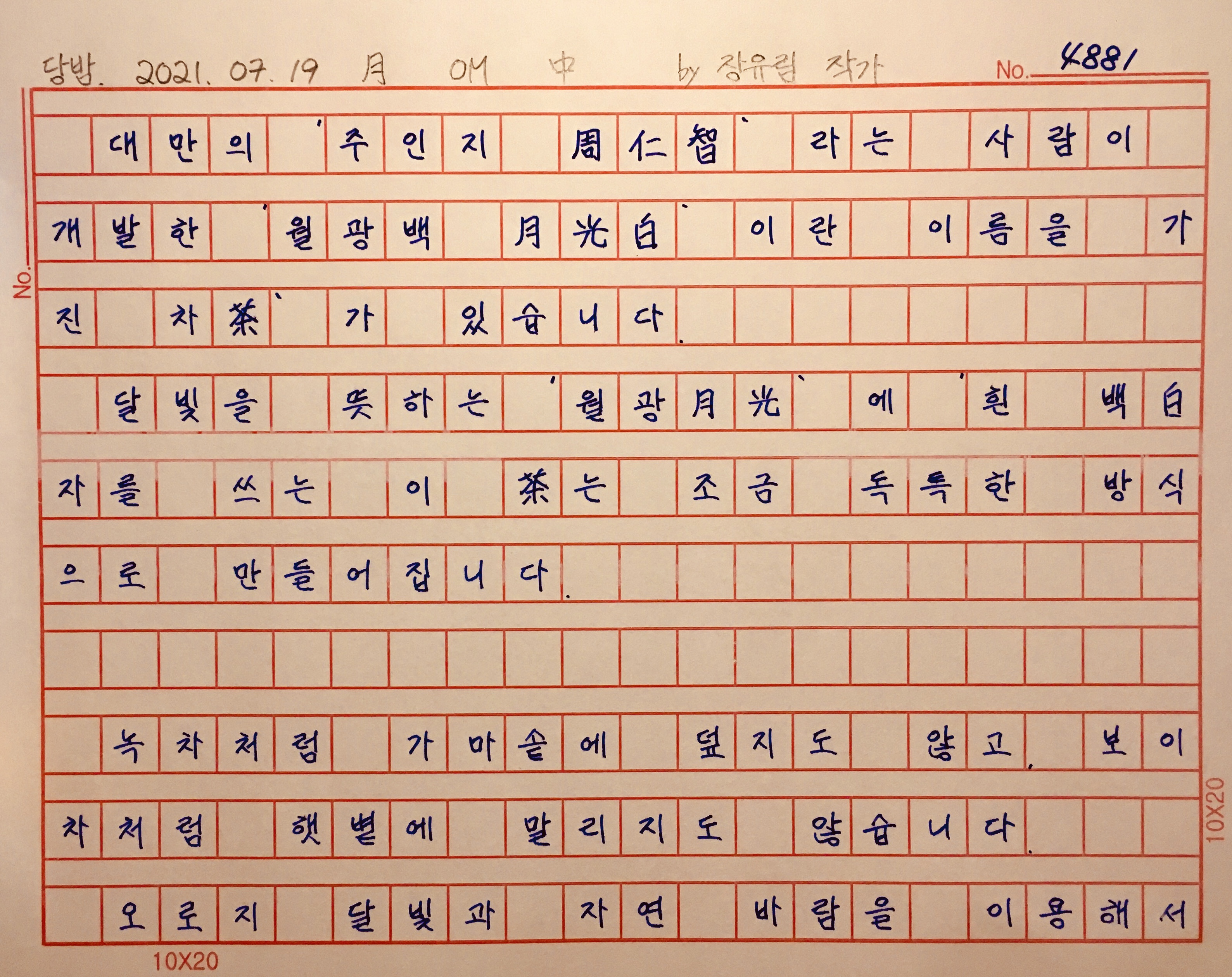 이름에 달빛이 들어가는 차 한 모금을 조금 머금어봅니다.