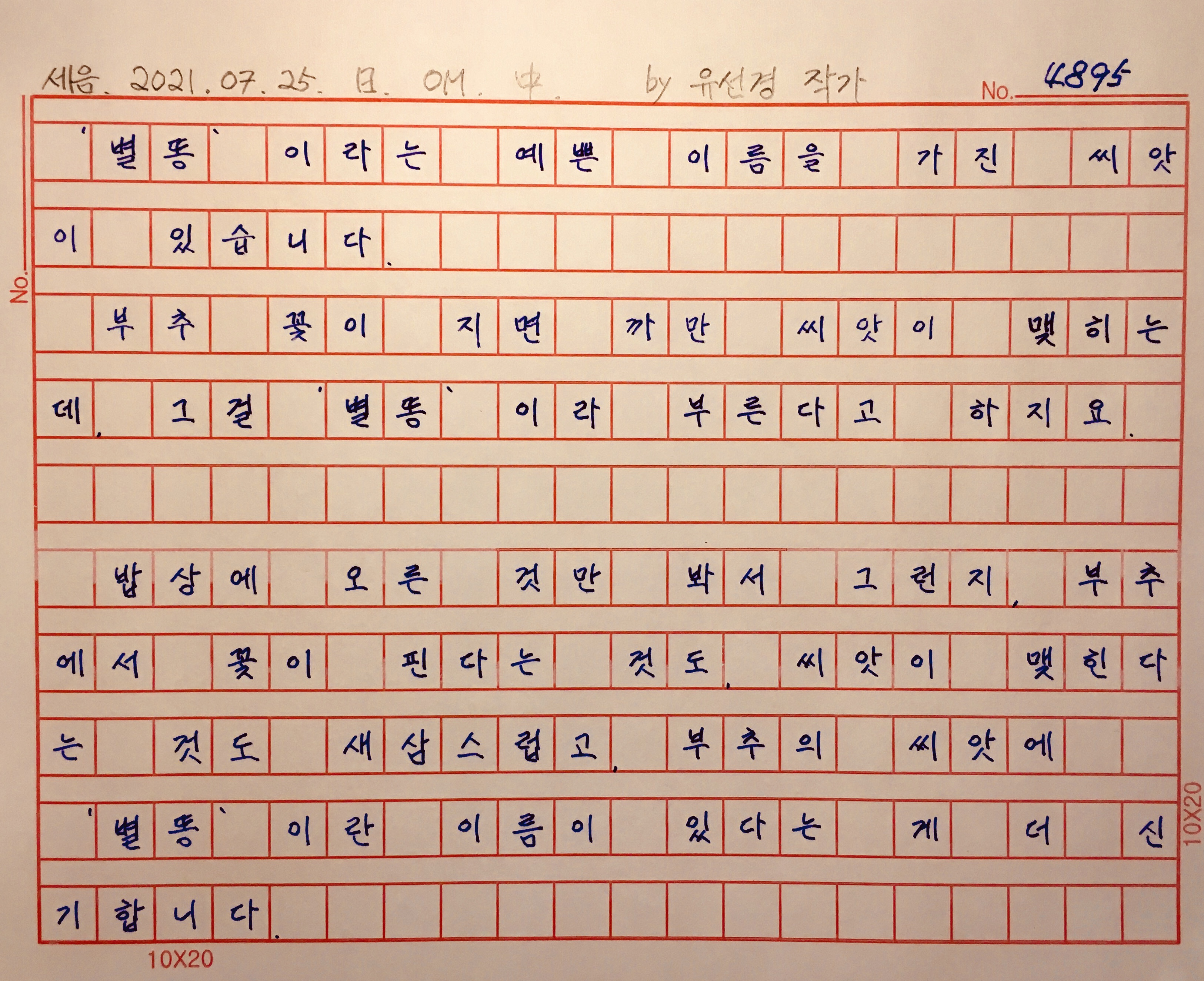 그 별이 진 자리에 맺히는 씨앗. 그래서 별똥이라는 겁니다.