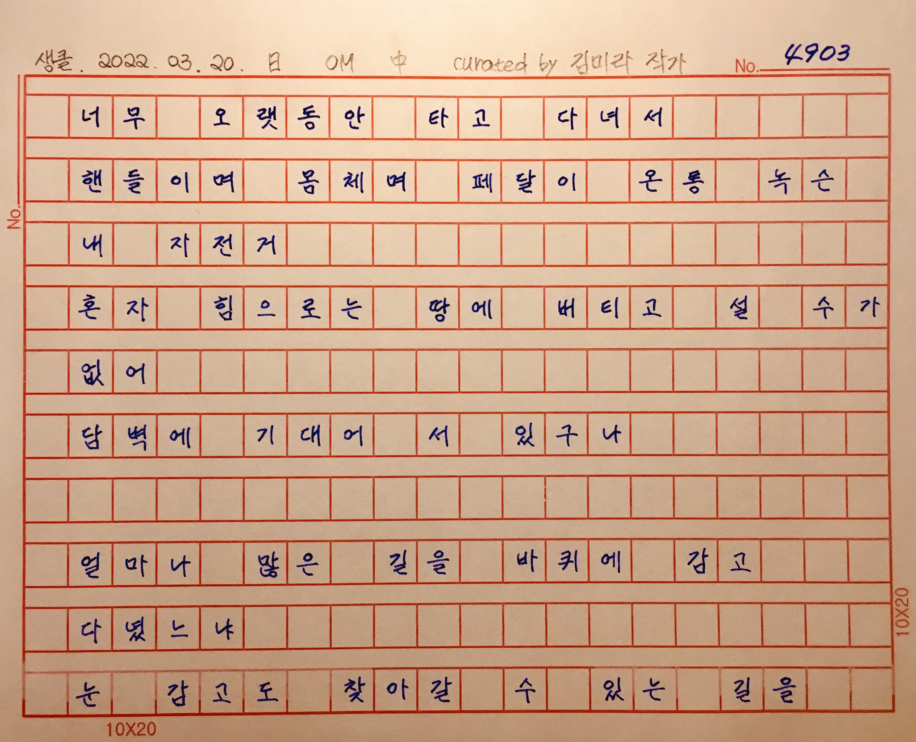 자전거를 타는 속도처럼 좀 더 경쾌하고 홀가분해졌으면 좋겠다