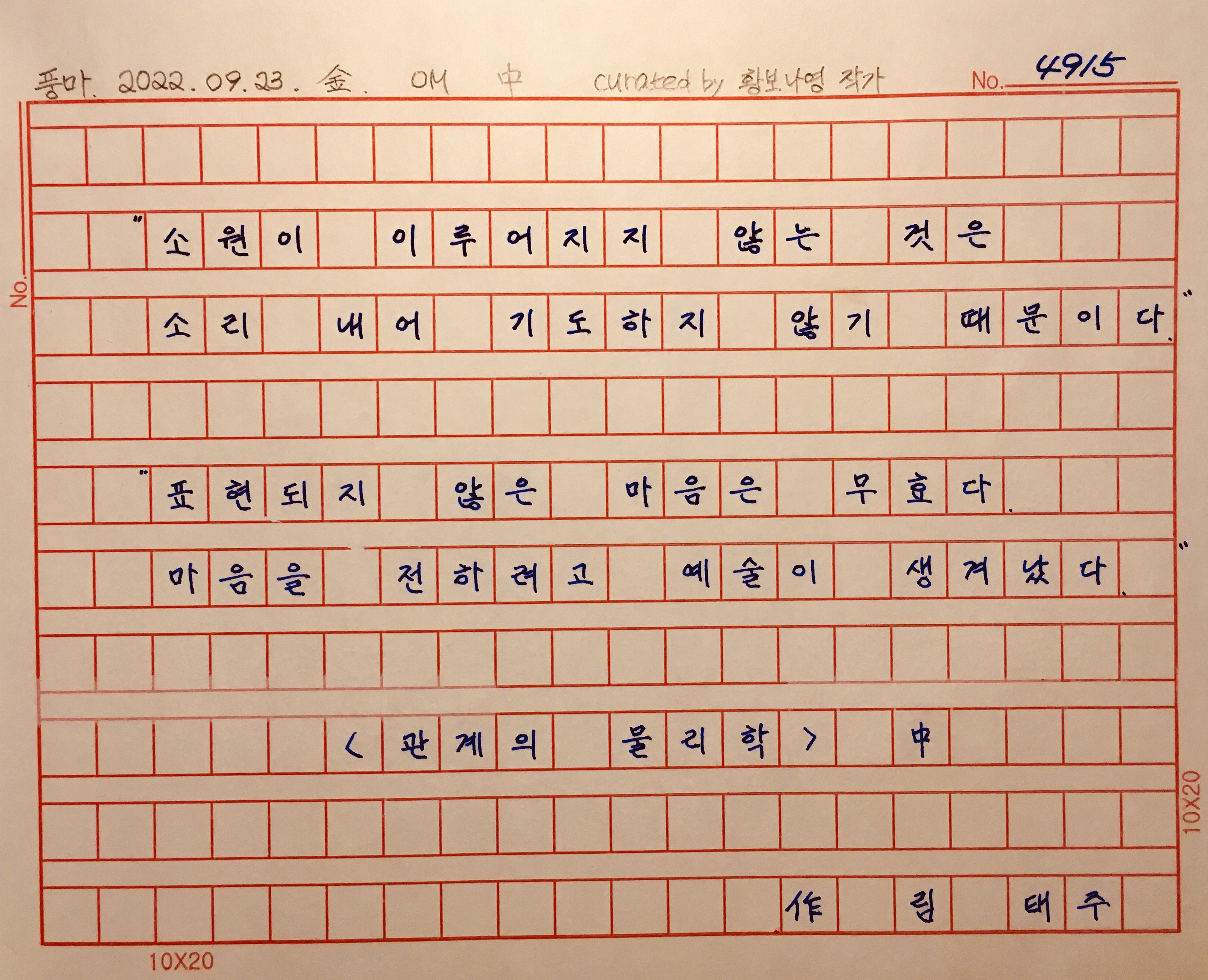| 피천득 작가 「나의 사랑하는 생활」중 (0) | 2022.09.12 |