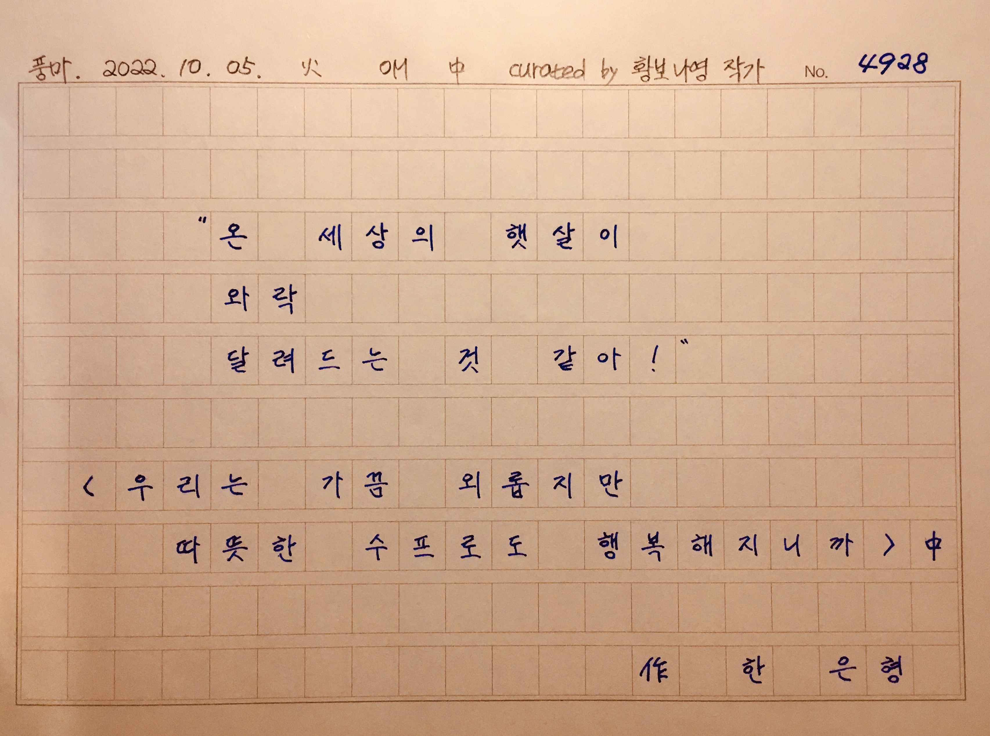햇살의 기운을 흠뻑 느껴보고 싶다는 생각을 해 봅니다."