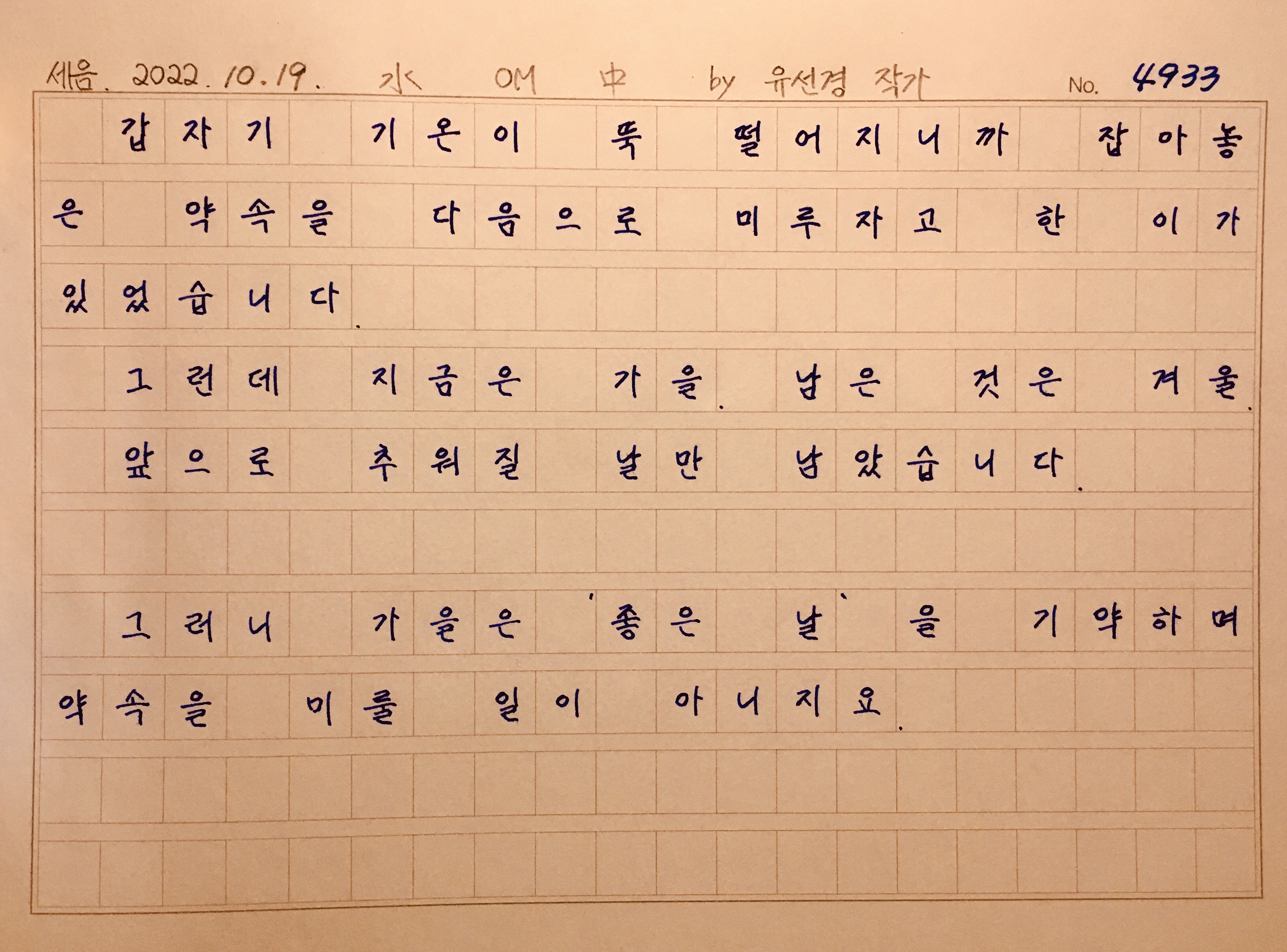 "생각해 보면 이 가을뿐 아니라 많은 것이 그렇지 않나 싶습니다.