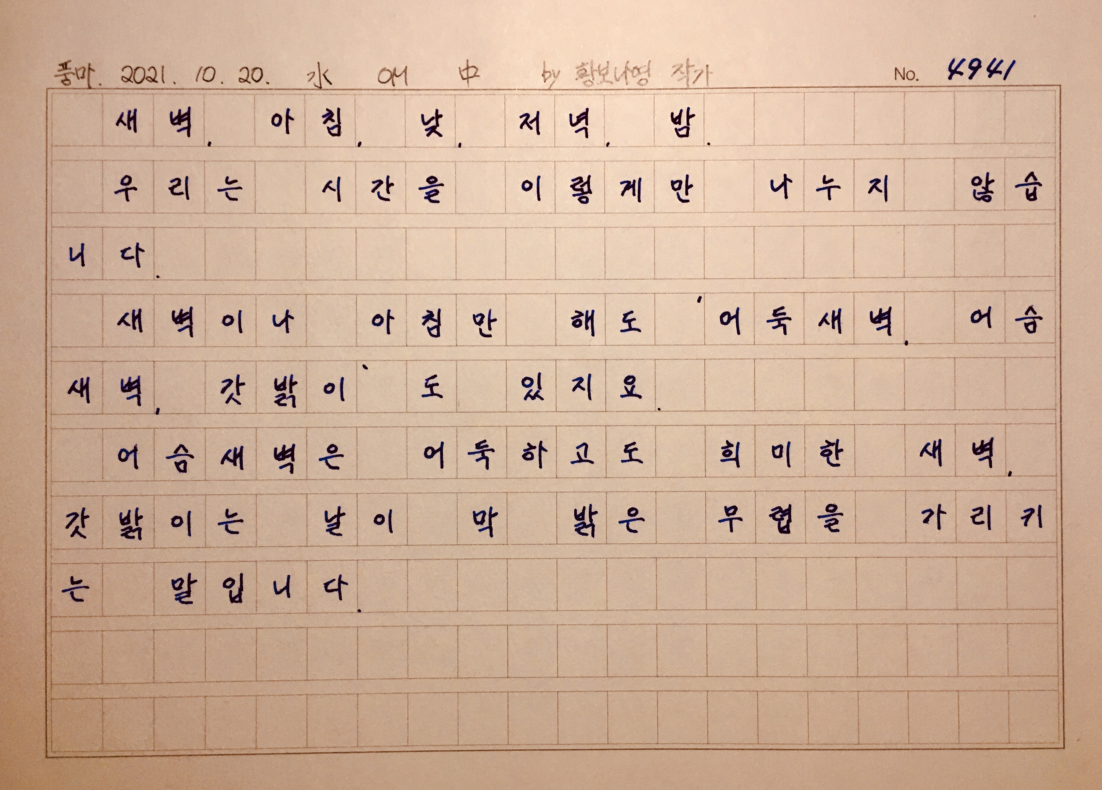 나의 하루 중에서 가장 많은 단어가 필요한 시간은 언제인가