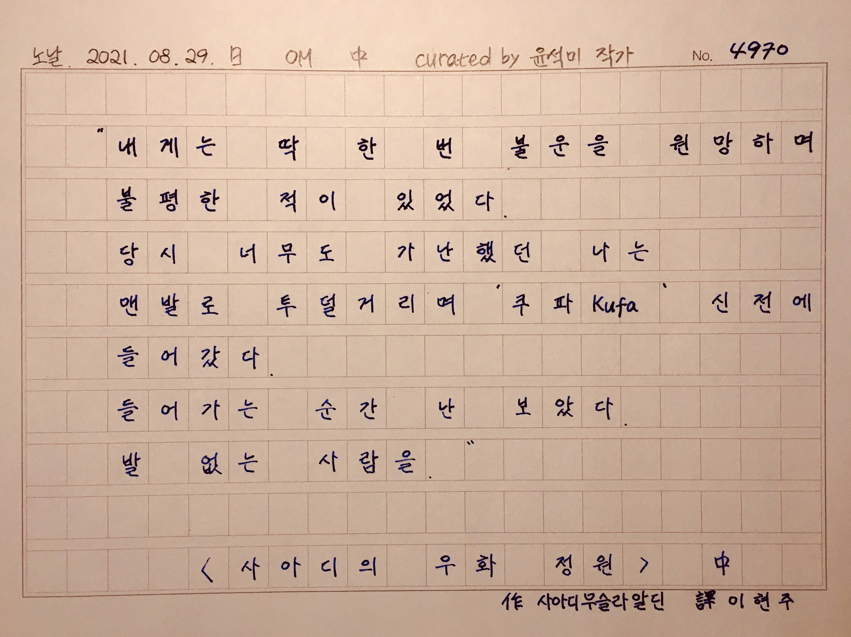 순간 사아디의 아리고 쓰리던 맨발은 자연 치유가 되지 않았을까요.