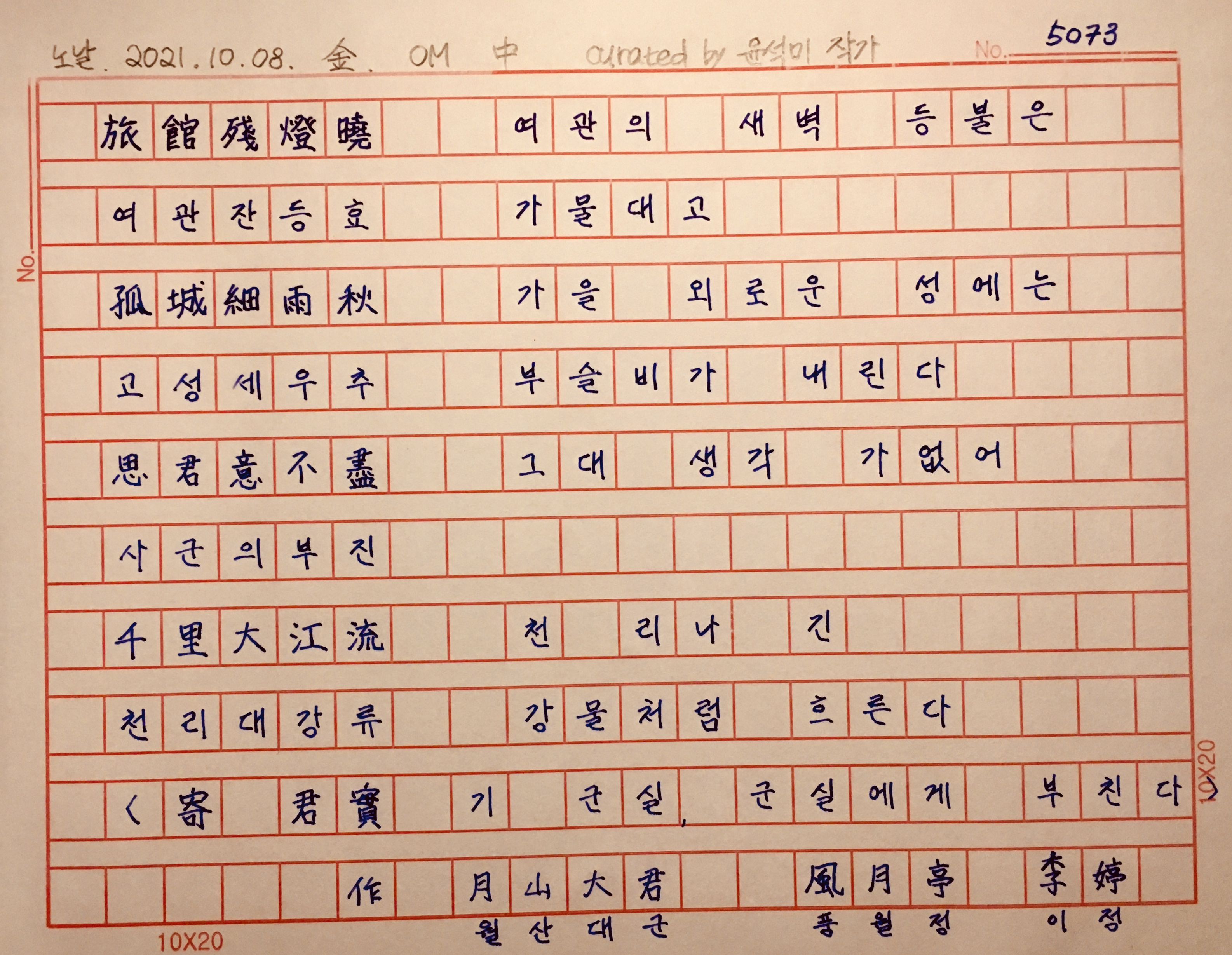 가을비가 내릴 때, 외로운 성처럼 낯선 곳에 있을 때, 가을밤을 지새운 날 새벽에.