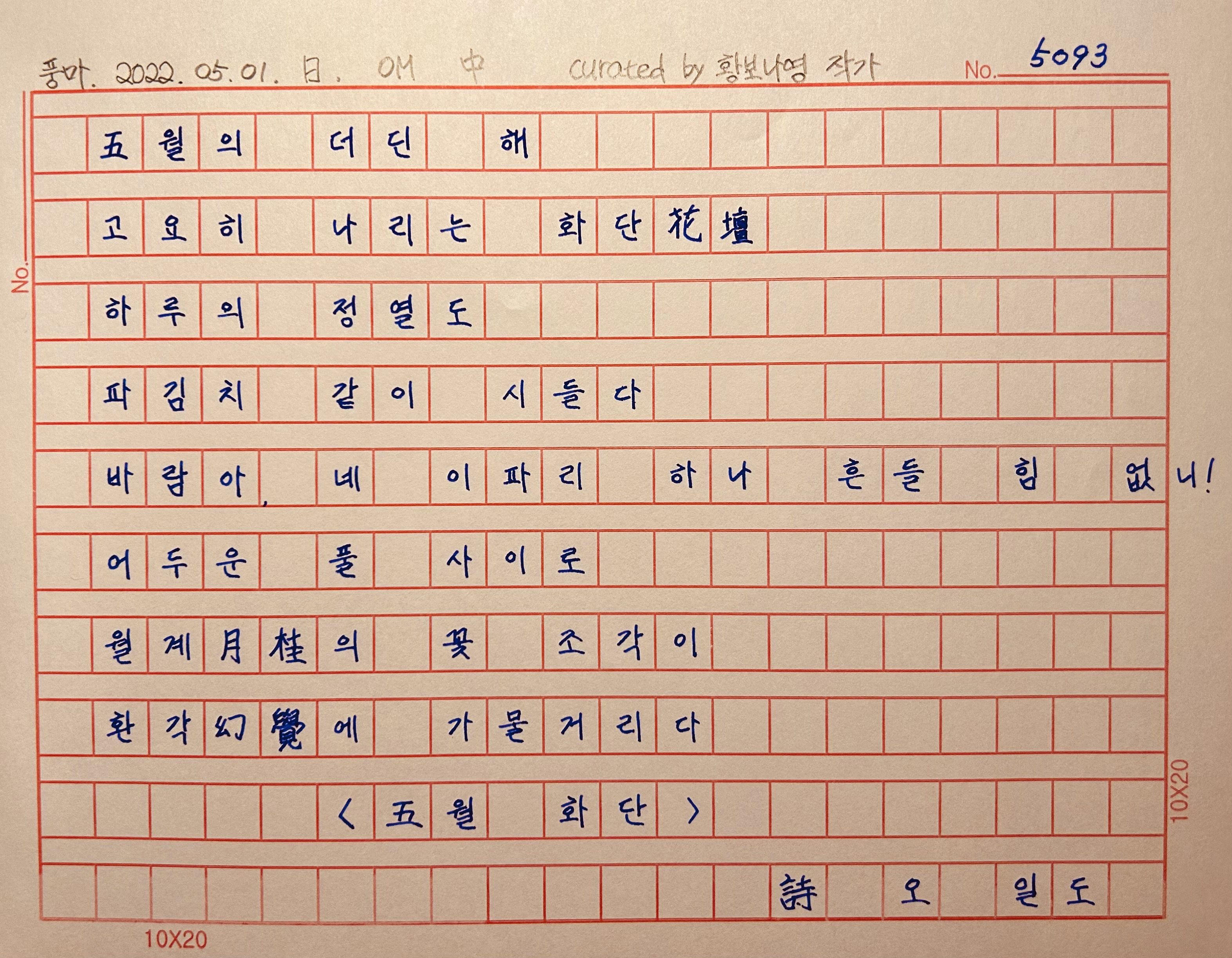 五월의 더딘 해가 고요히 내리는 이 시간, 이 오후.