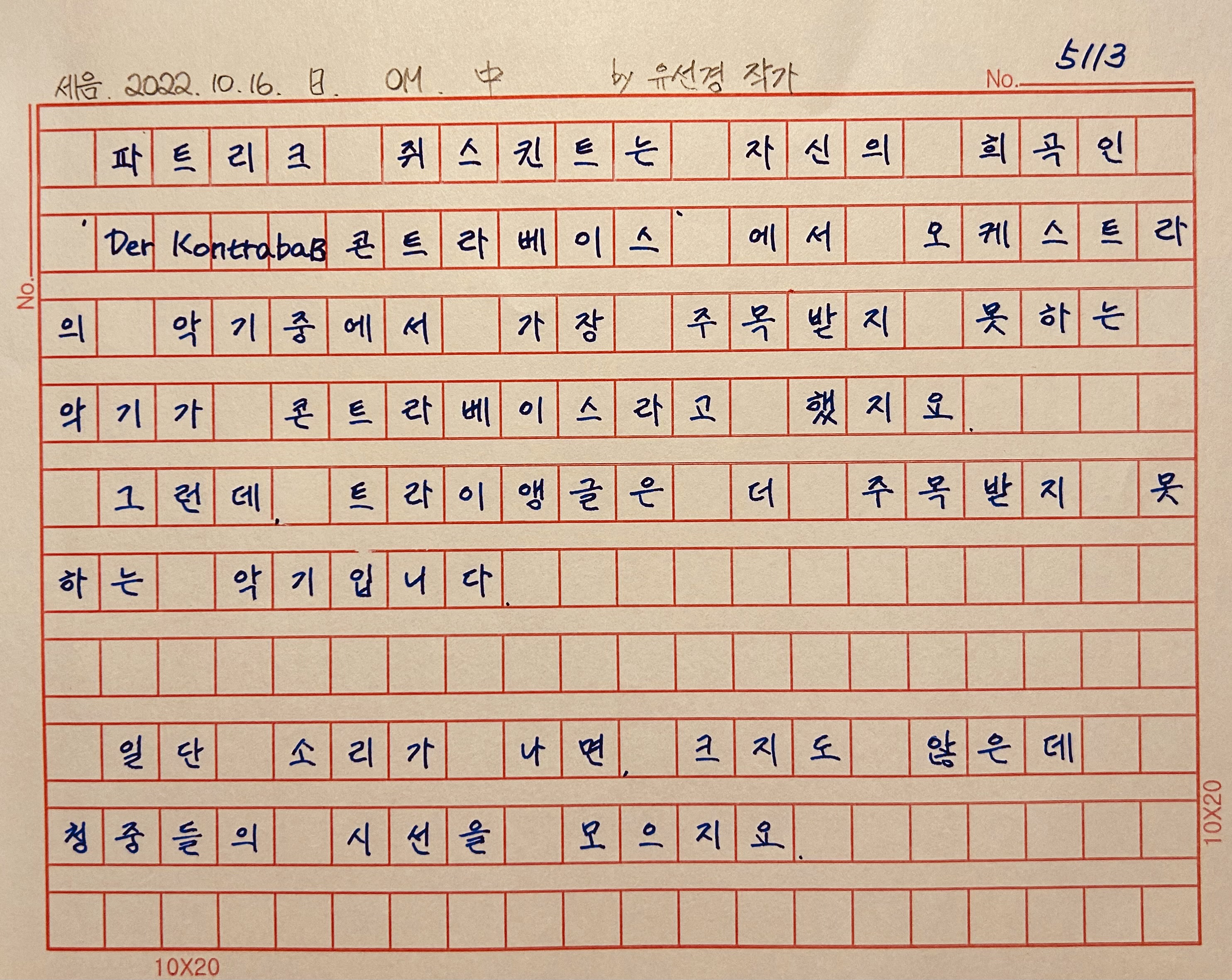 유난히 트라이앵글 연주자에게 시선이 갔습니다.