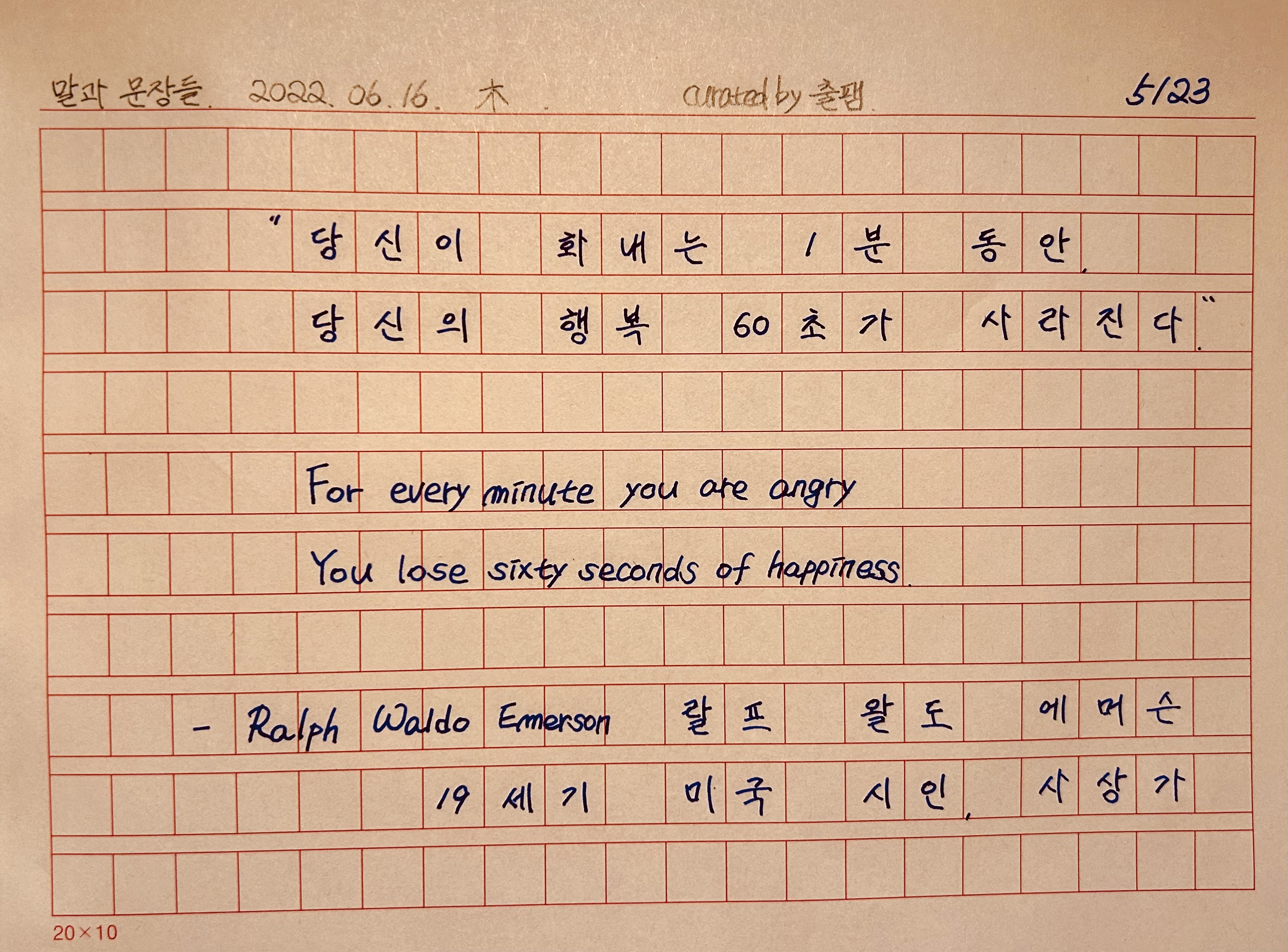"당신이 화내는 1분 동안, 당신의 행복 60초가 사라진다."