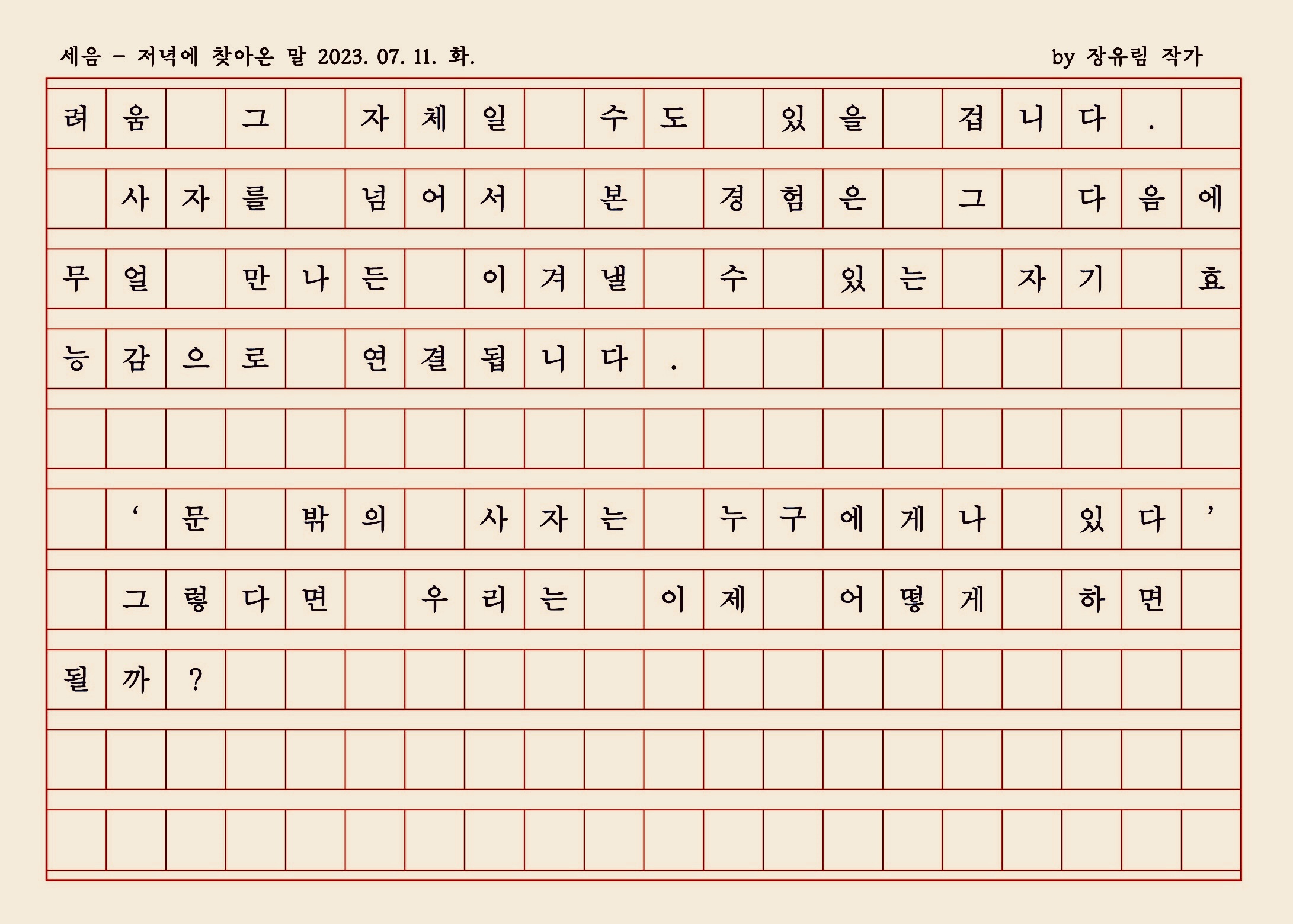 | 조금 더 용감하게 만들어 주는 말 (0) | 2023.08.05 |