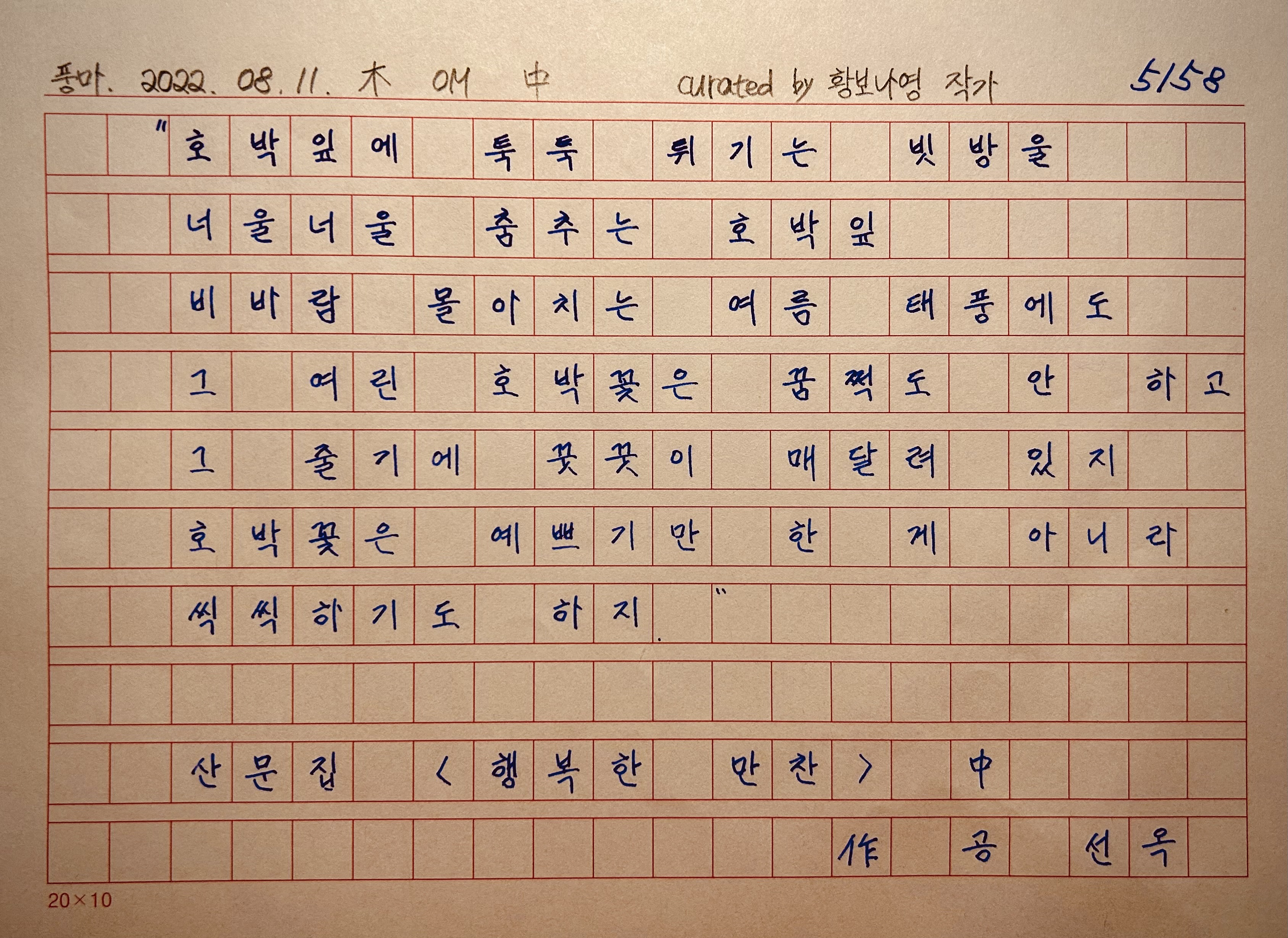 "호박을 그저 먹는 열매로만 바라보지 않고, 그 식물이 자라고 꽃피우고 열매 맺는 과정을 이야기하는 글이었습니다.