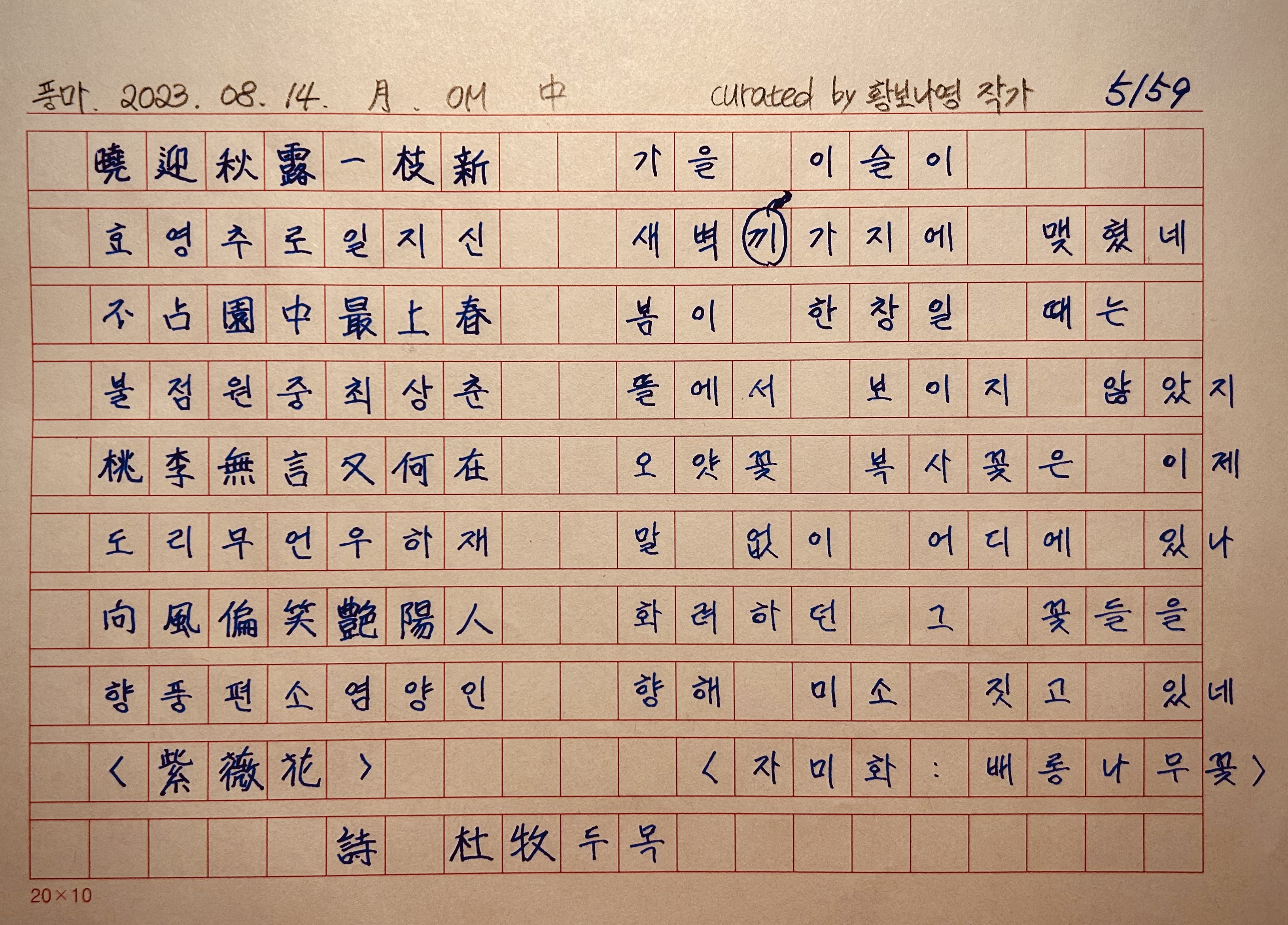 "당나라 시인 두목 杜牧이 배롱나무 꽃 (자미화) 을 노래한 시입니다.