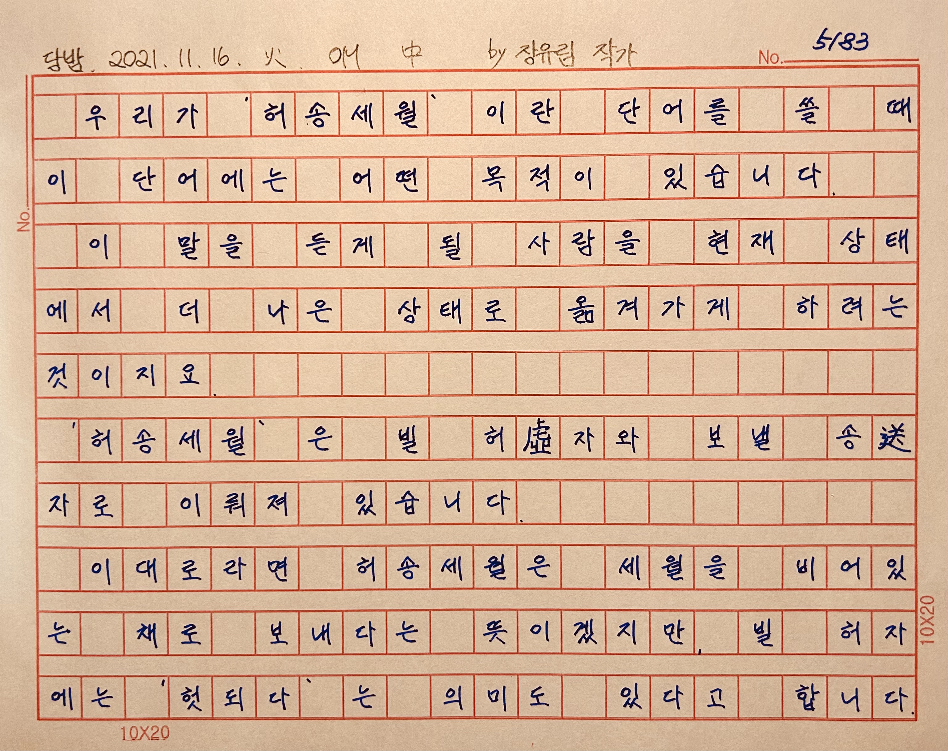 "그래서 허송세월은 헛되이 보내는 세월이 되는 겁니다.