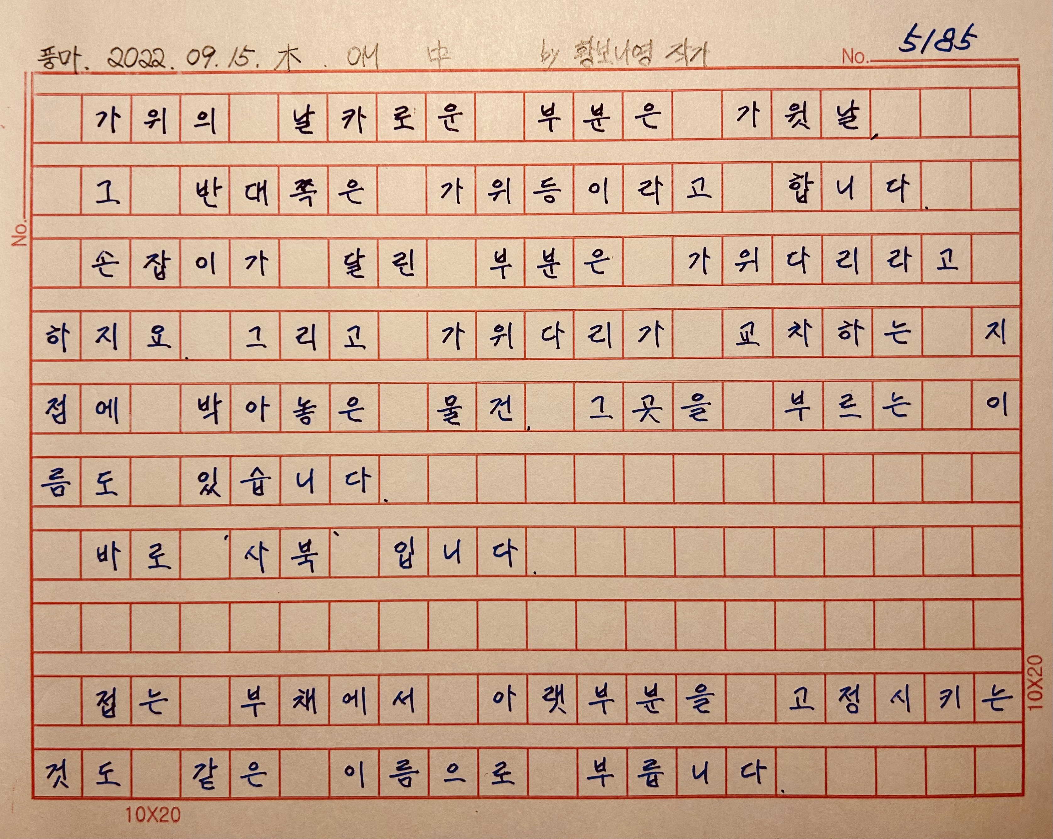 "사북은 어쩌면 가위나 부채가 제 역할을 하도록 만드는 가장 중요한 부분인데,