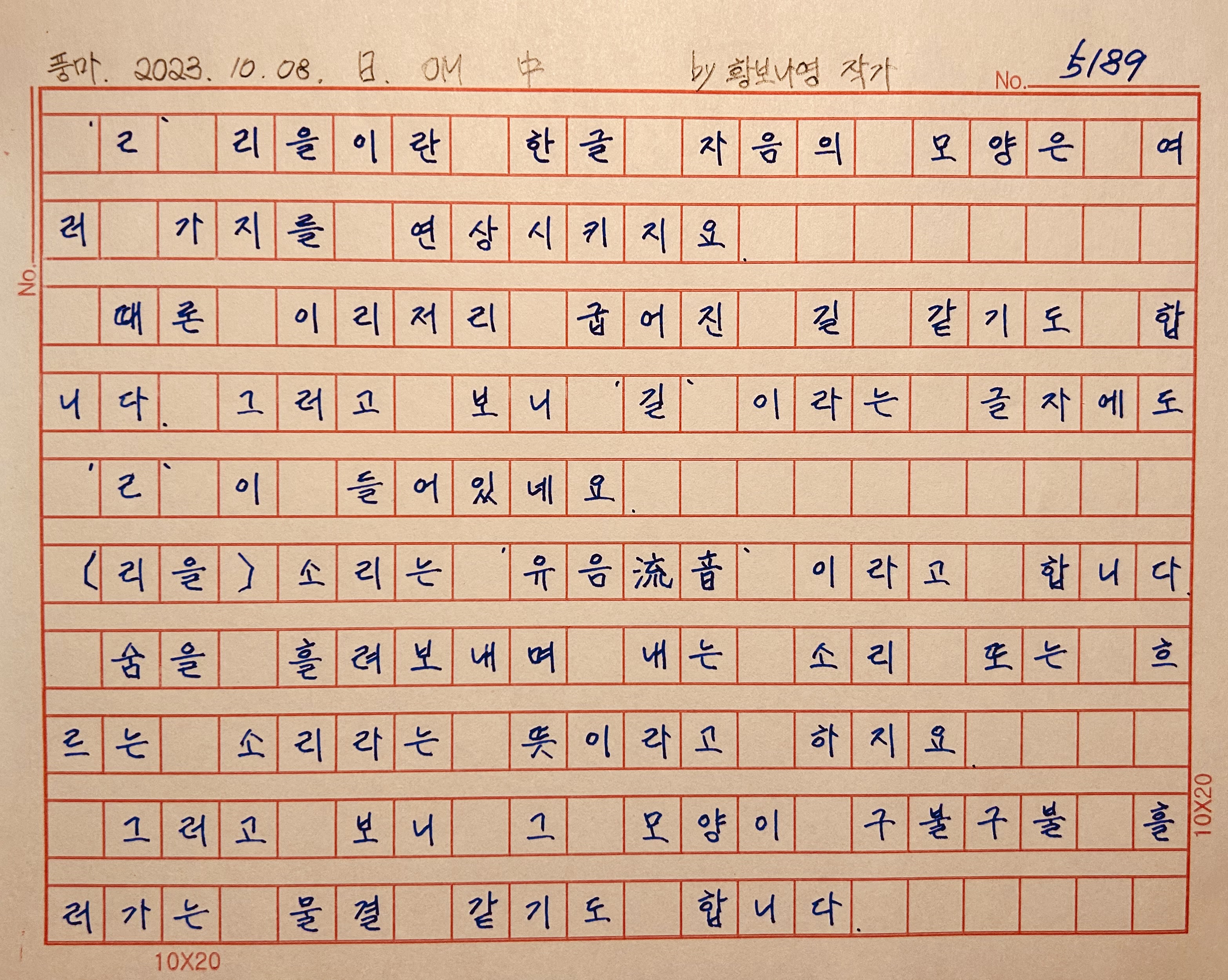 "부드럽게 걸어가고 흘러가는 모든 움직임이 'ㄹ' 이라는 글자 속에 담겨 있는 것 같습니다.
