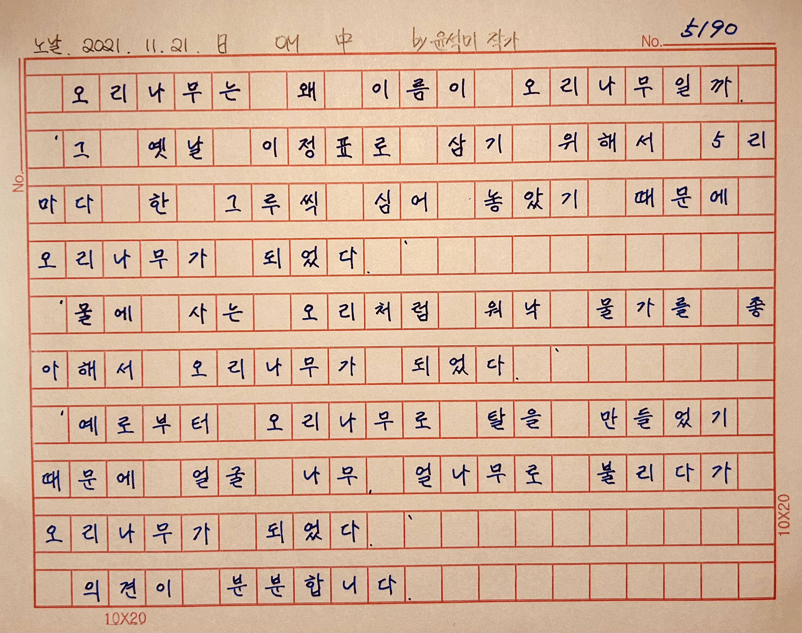 "오리나무가 왜 오리나무라는 이름이 되었는지는 오리나무만 알까.