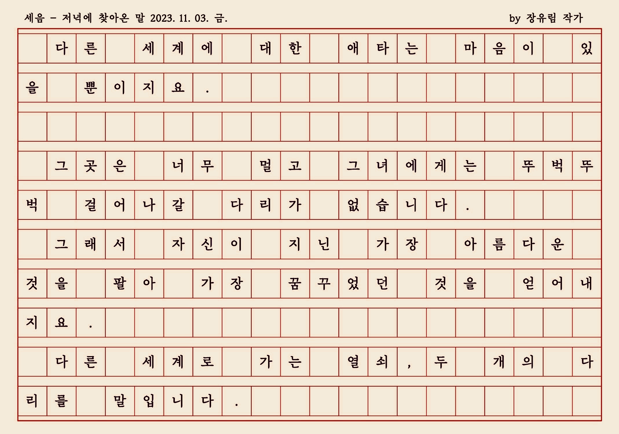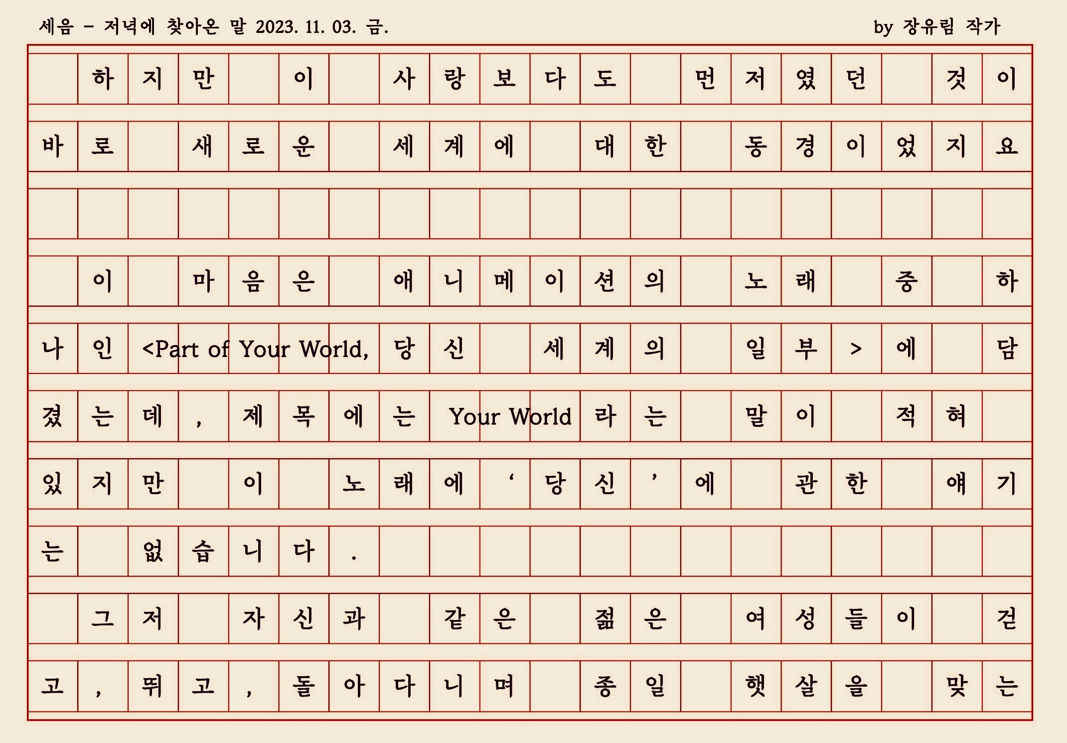 '받아쓰기 > 저녁쉼표&저녁말 & 친당 & 멀가' 카테고리의 다른 글