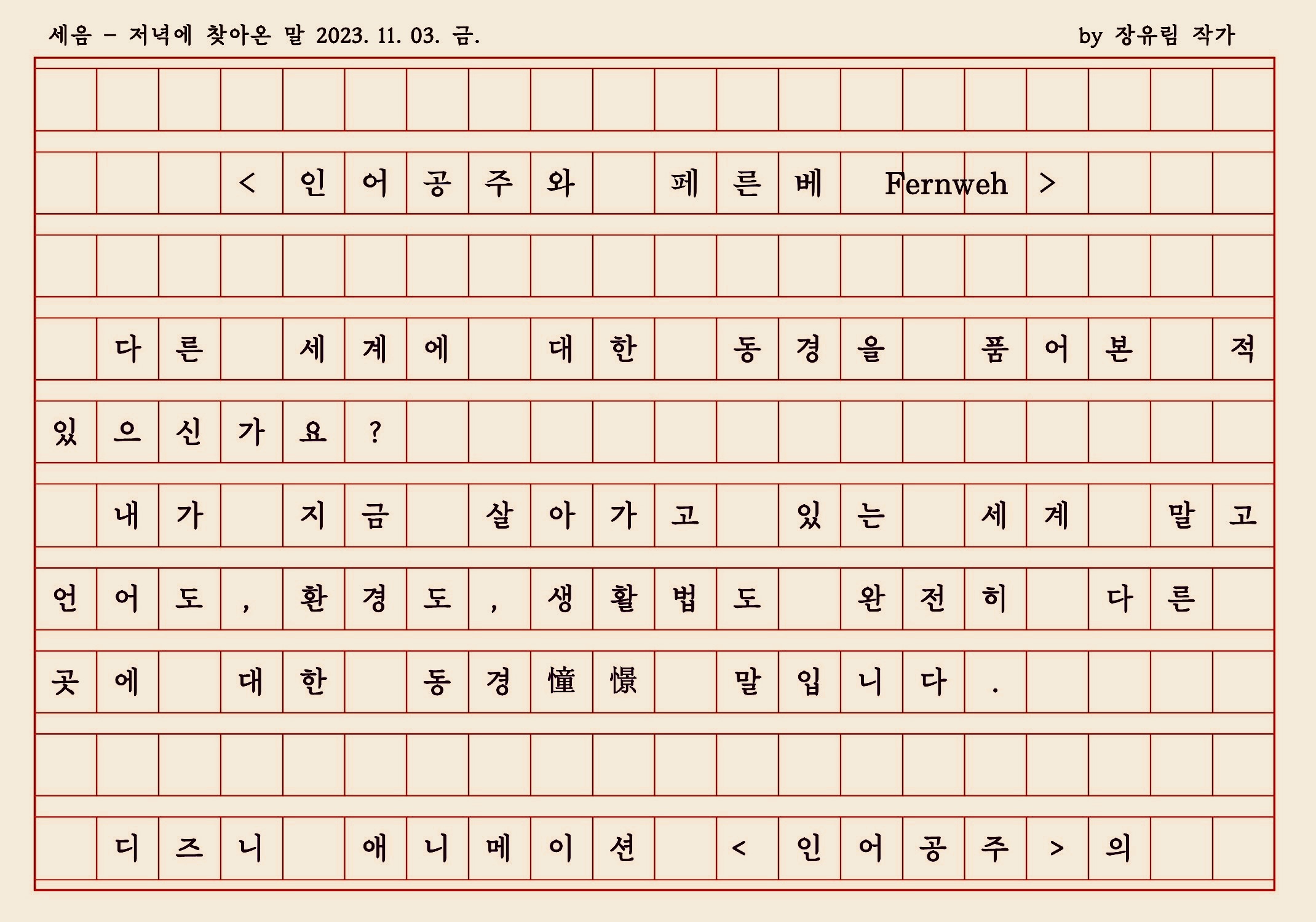 독일에서는 이 마음을 '페른베 Fernweh'라고도 부른다지요.