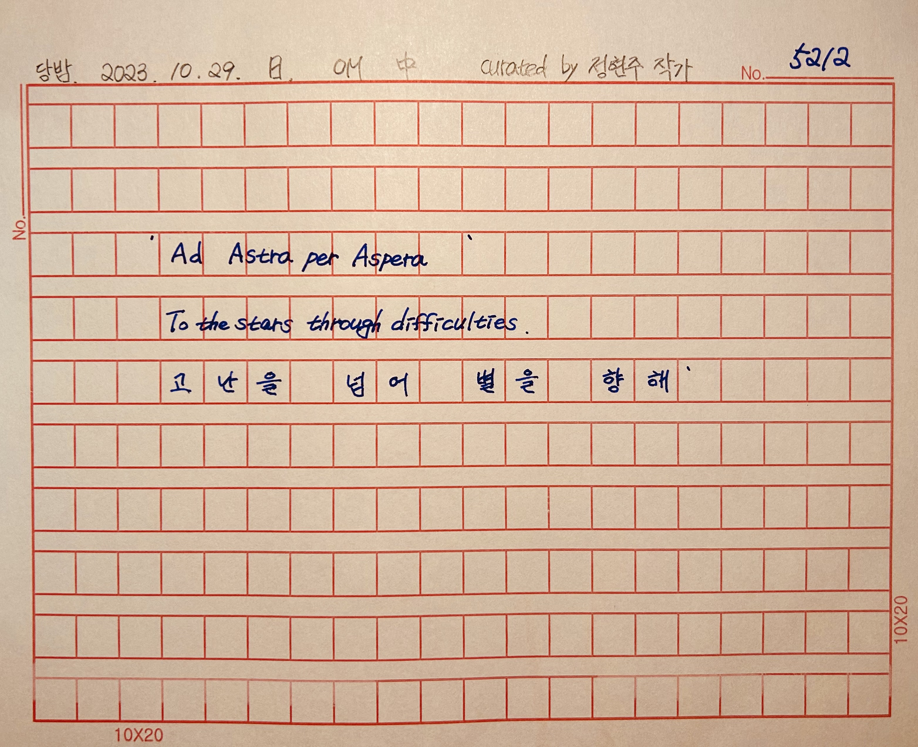"이 문장을 떠올릴 때마다 저는 고난을 넘어 별을 향해 가는 것이기도 하지만.