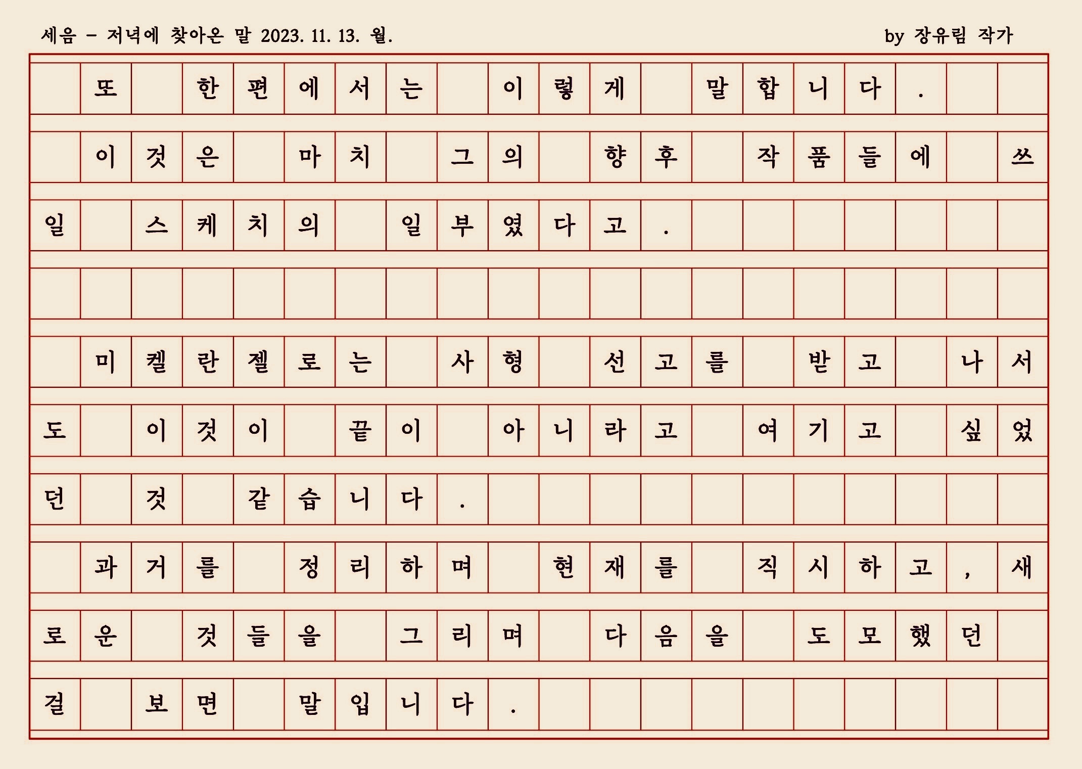 '받아쓰기 > 저녁쉼표&저녁말 & 친당 & 멀가' 카테고리의 다른 글