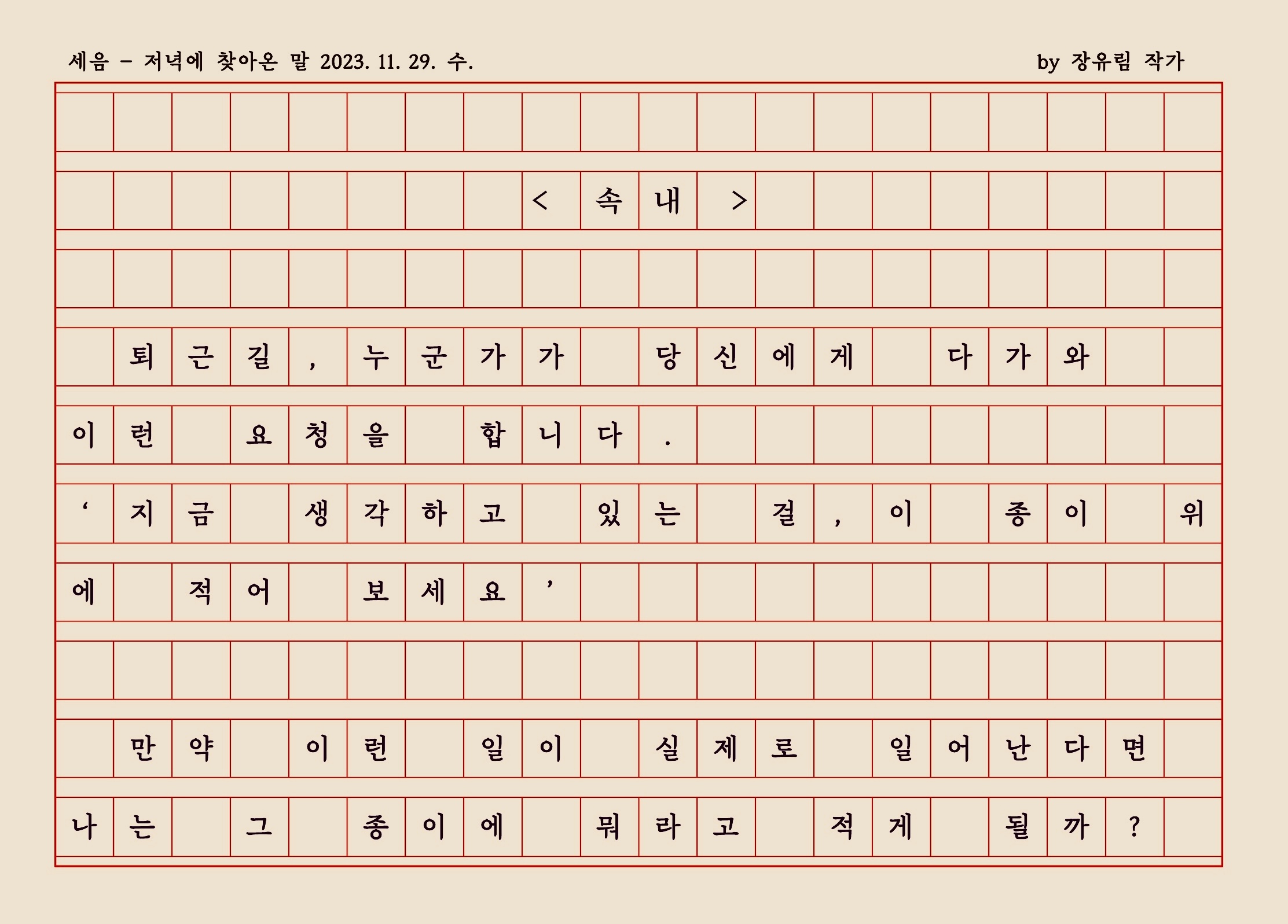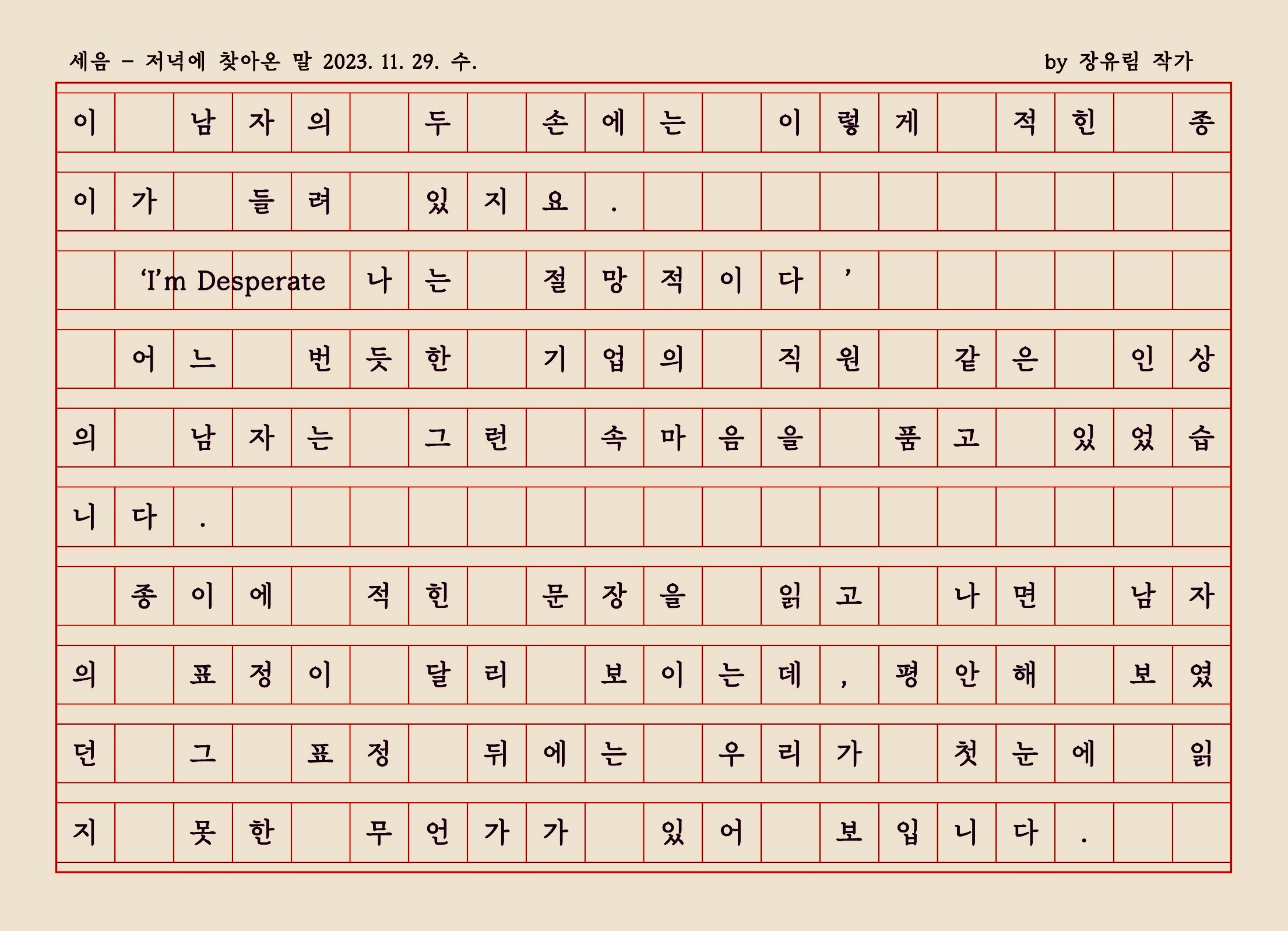 현재의 내 마음을 글자로 적는다면, 나는 무어라 적을 수 있을까.
