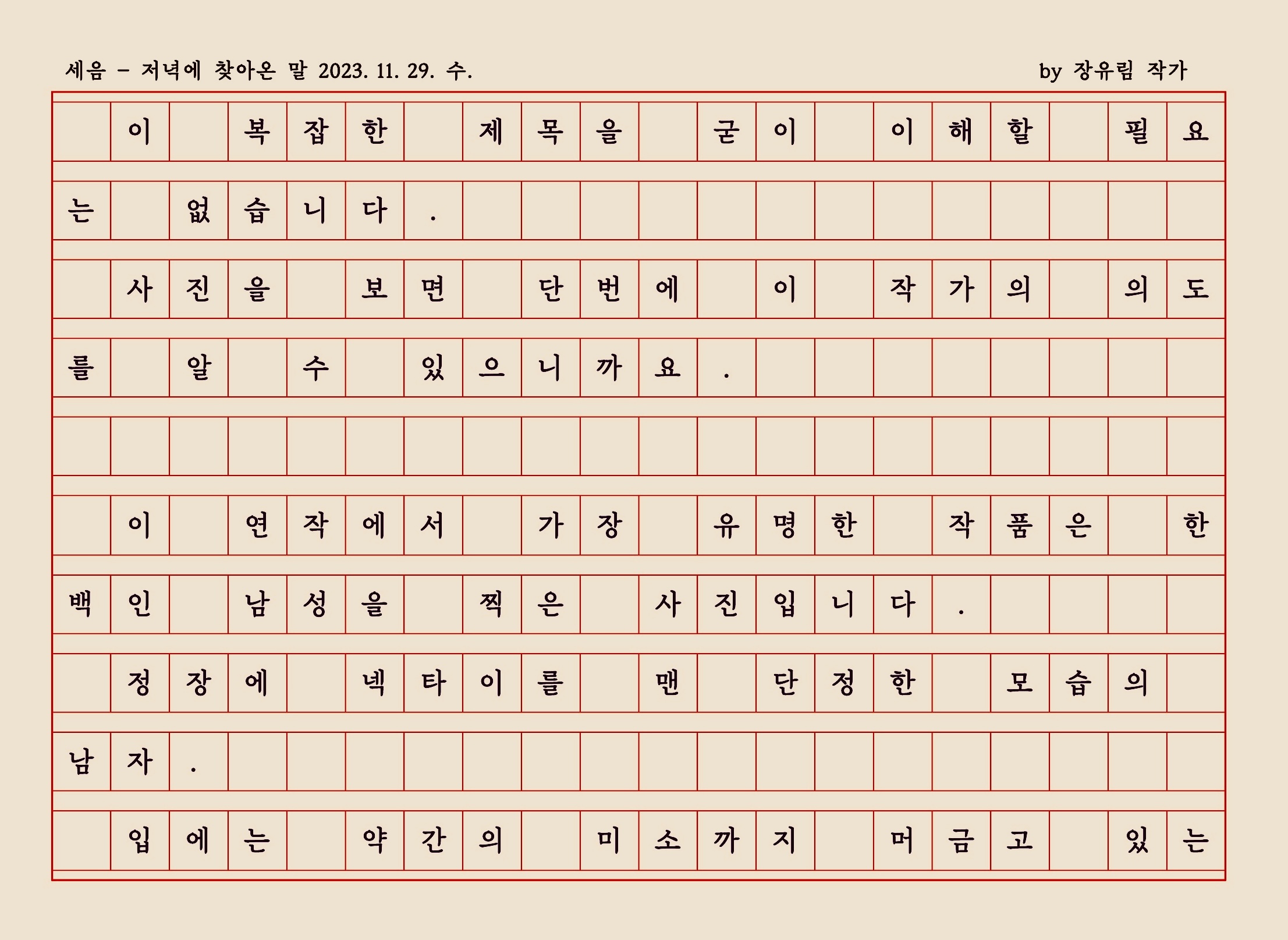 | 예쁘다 (2) | 2023.12.18 |