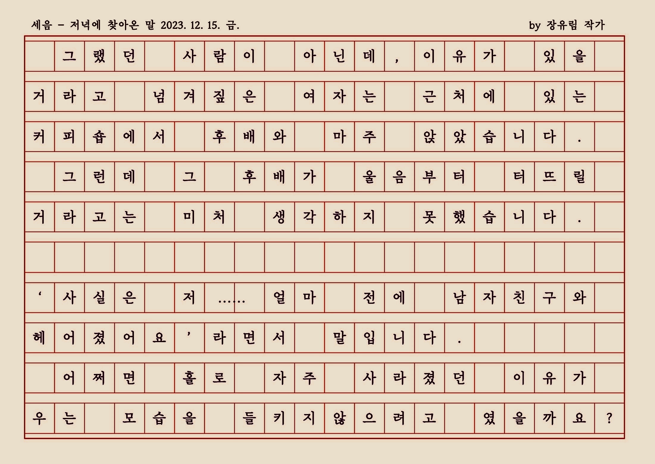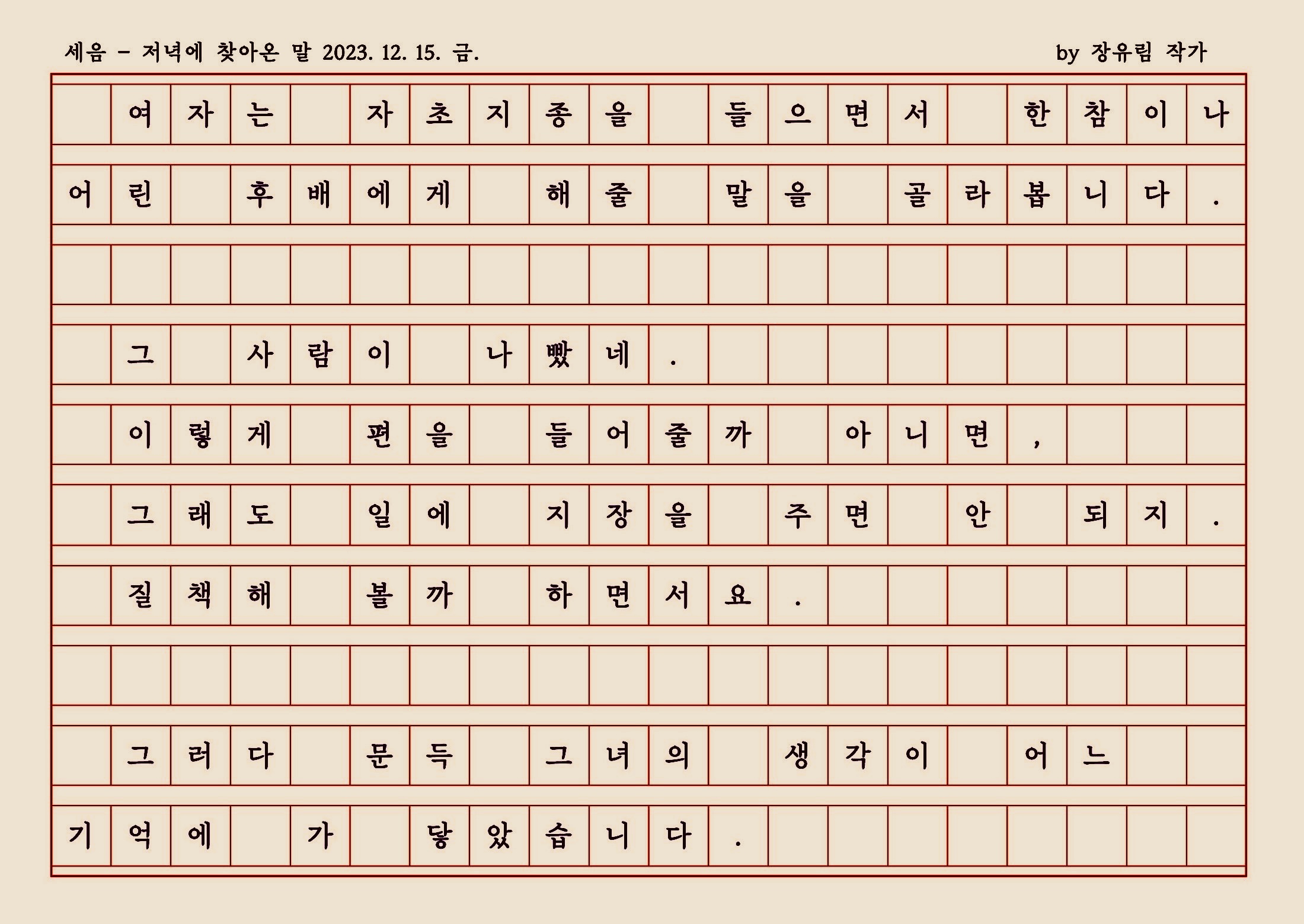 '받아쓰기 > 저녁쉼표&저녁말 & 친당 & 멀가' 카테고리의 다른 글