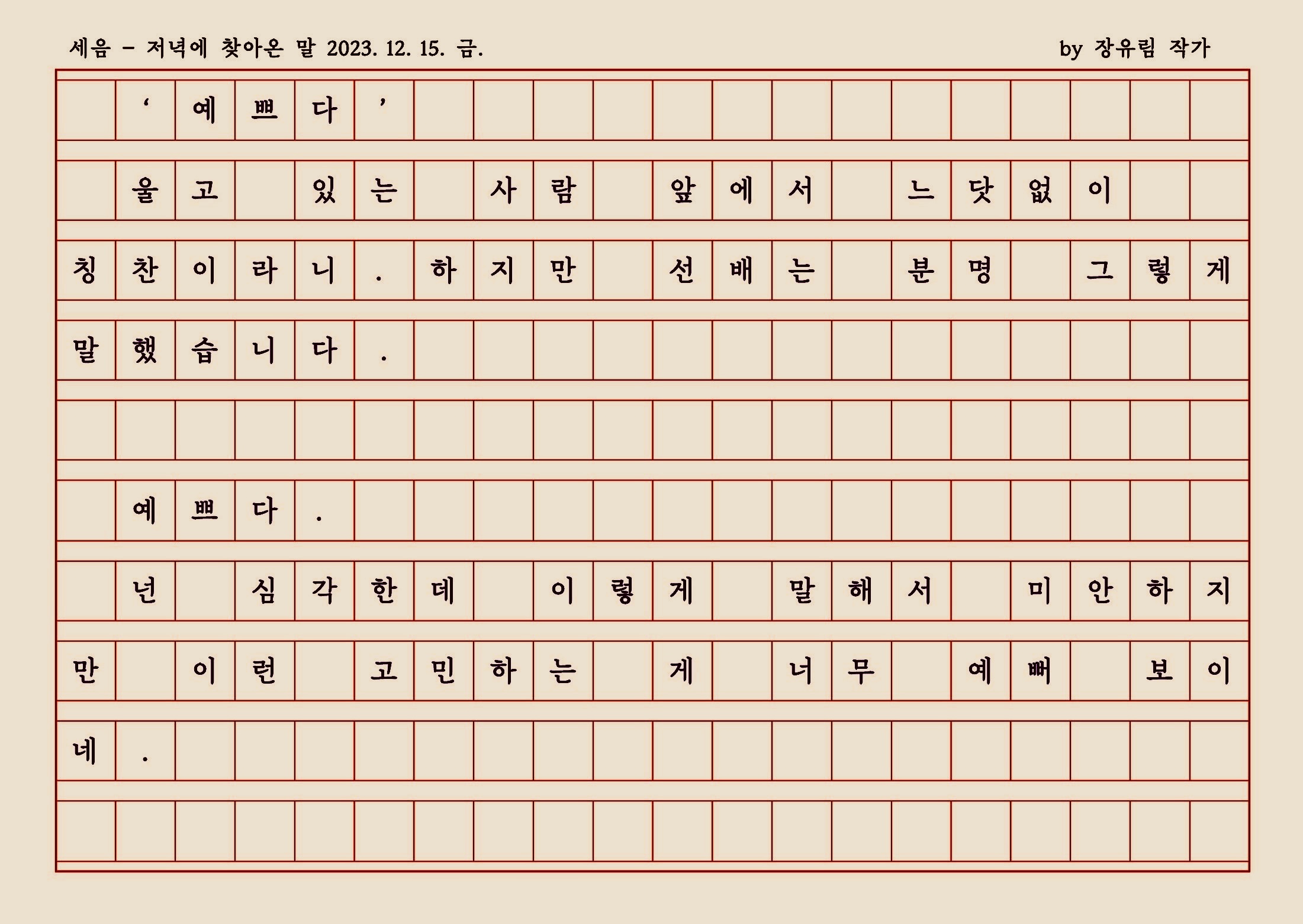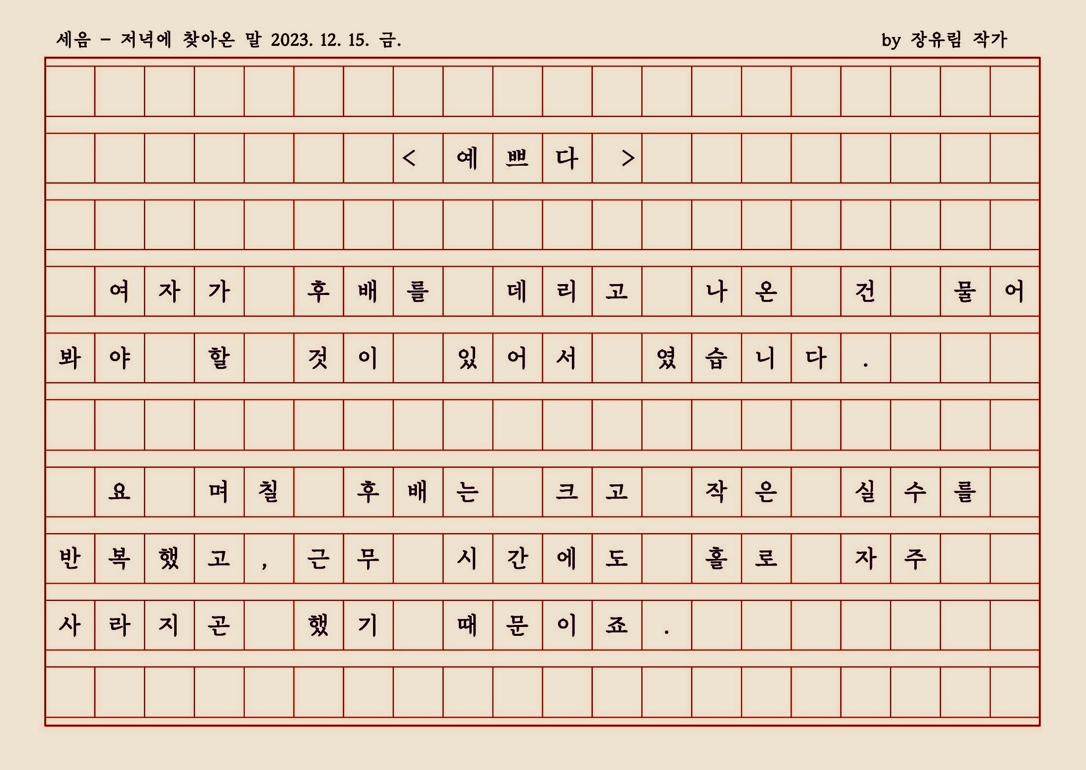 예쁘다라는 그녀가 전해 들었던 한마디 가요."