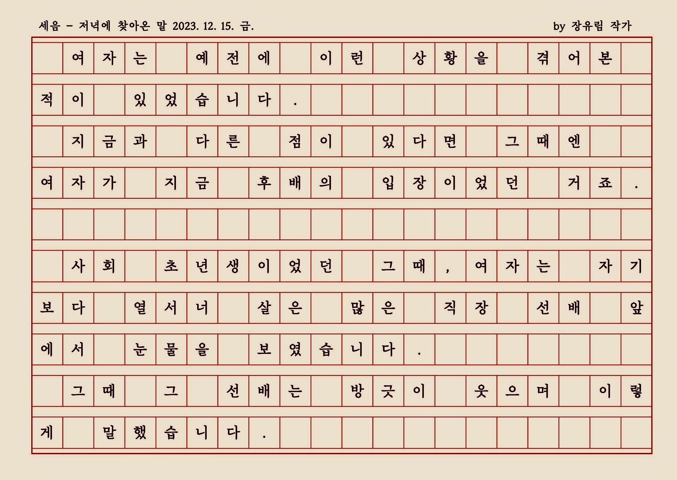 저녁에 찾아온 말 오늘은 위로의 대물림입니다.