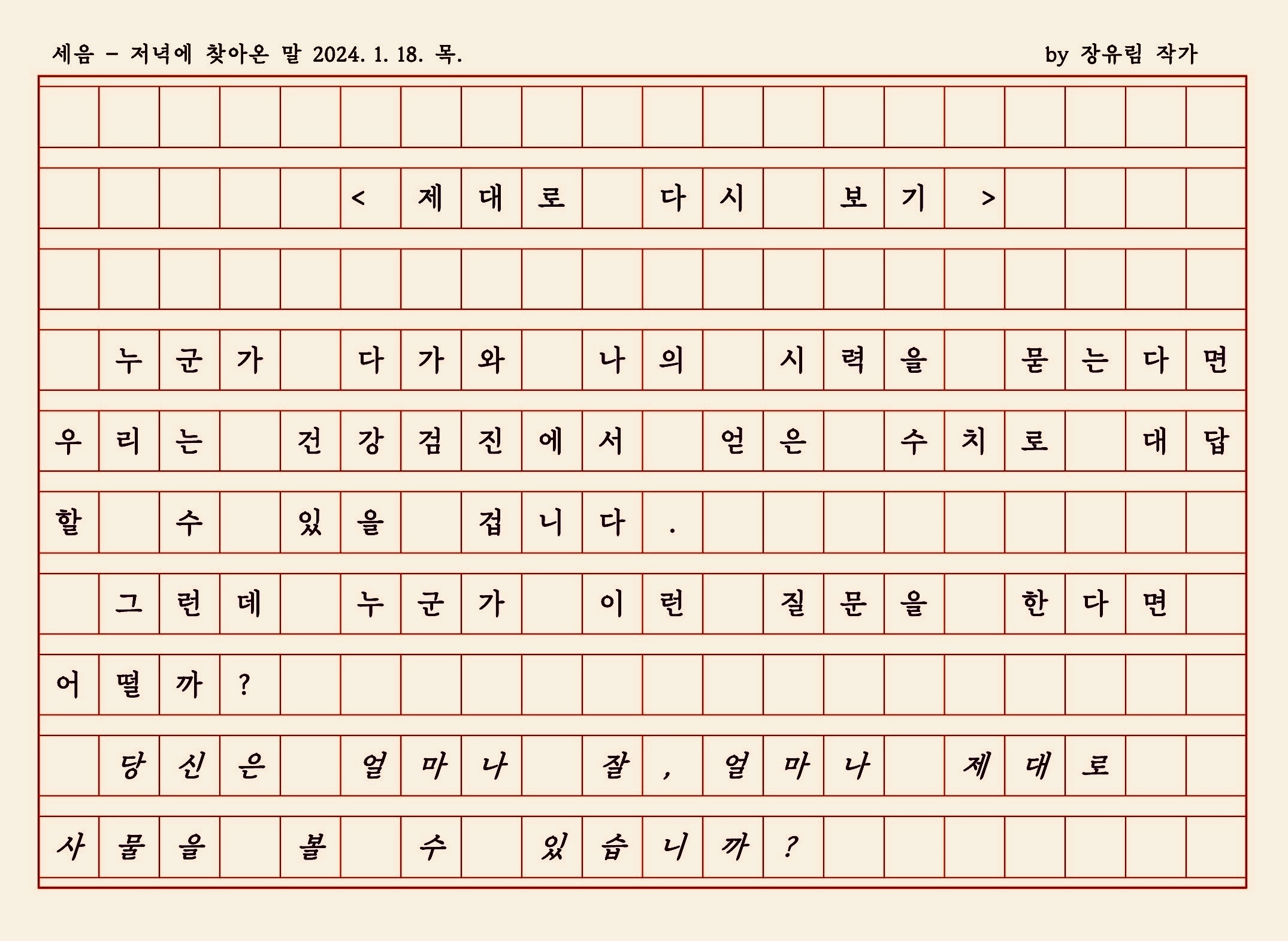 오늘은 제대로 다시 보기라는 말을 마음에 담습니다.