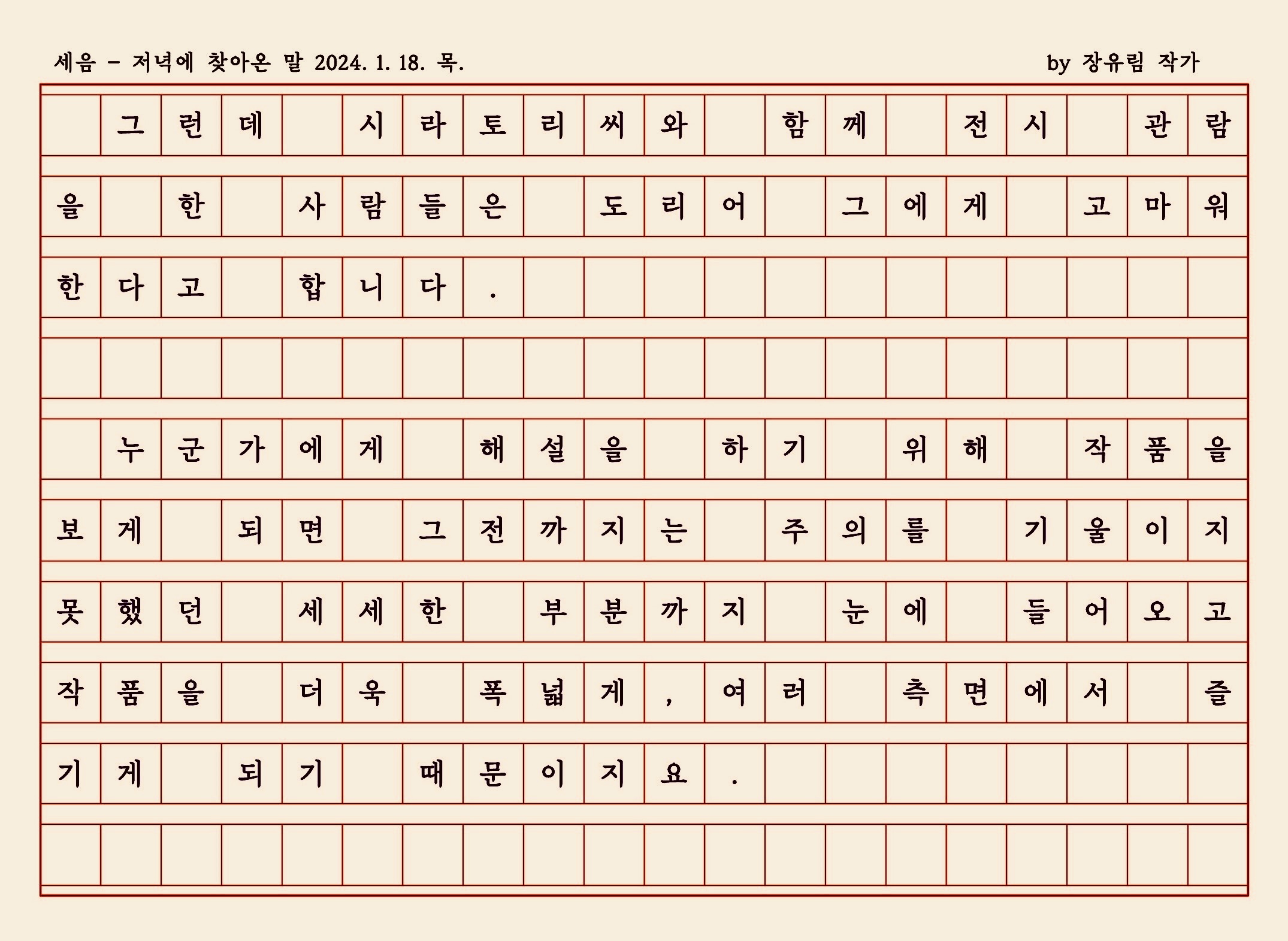 늘 보는 작품 앞에서 호수가 있다고 했다가 자세히 보니 호수가 아닌 들판이라고.