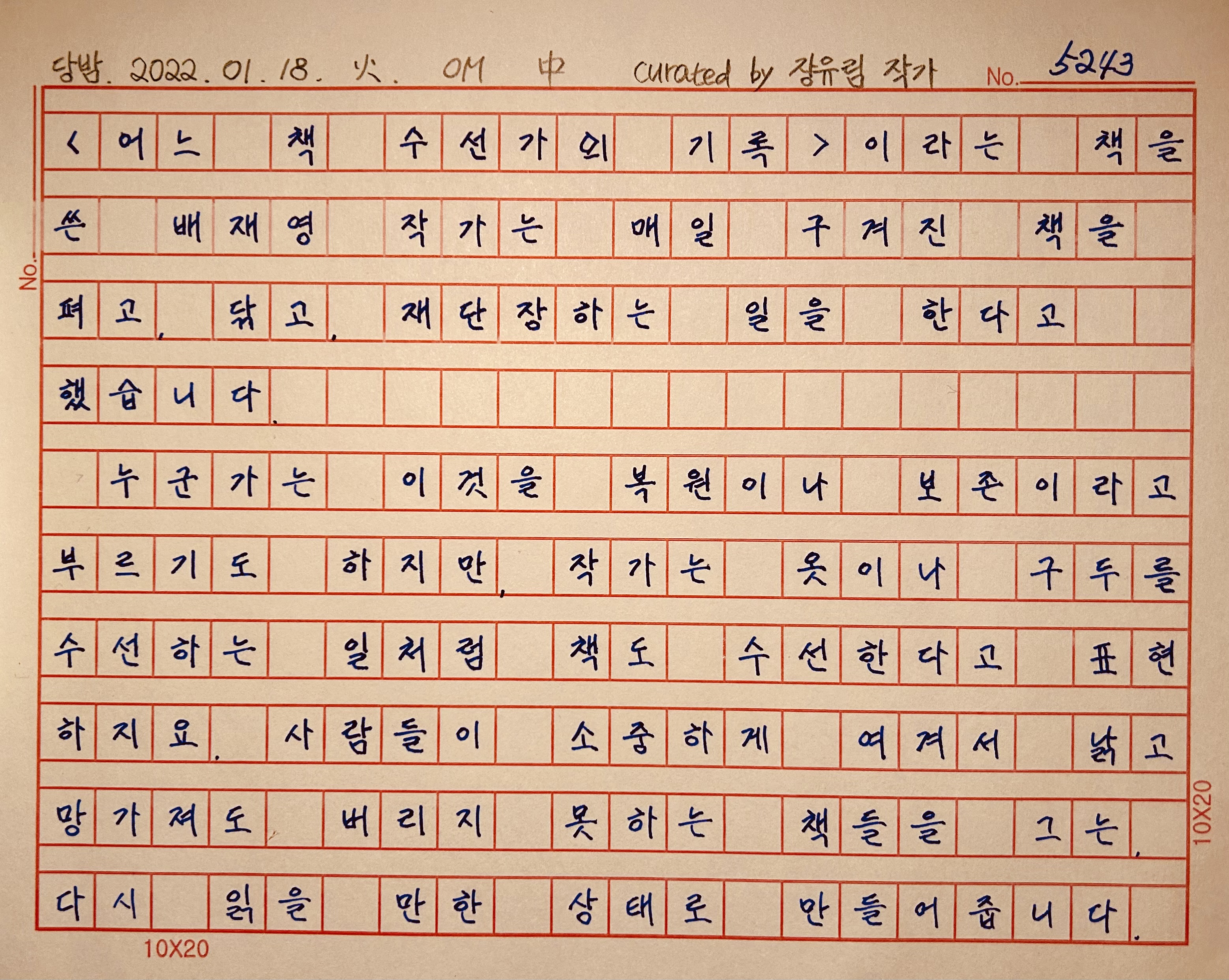 "그런데 다 수선된 책을 의뢰인에게 돌려줄 때 작가는