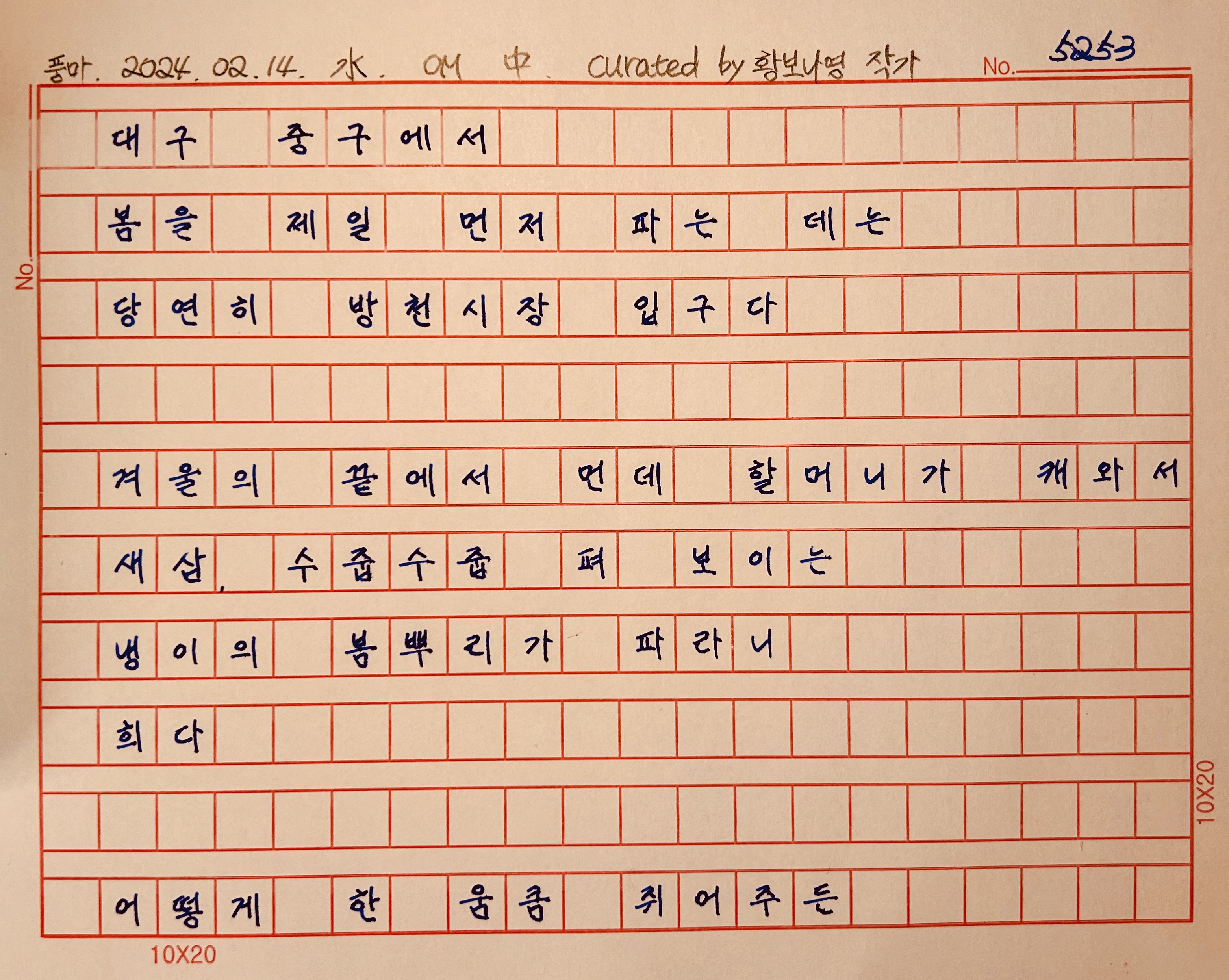 봄을 한 움큼 사 오고 싶은 날입니다."