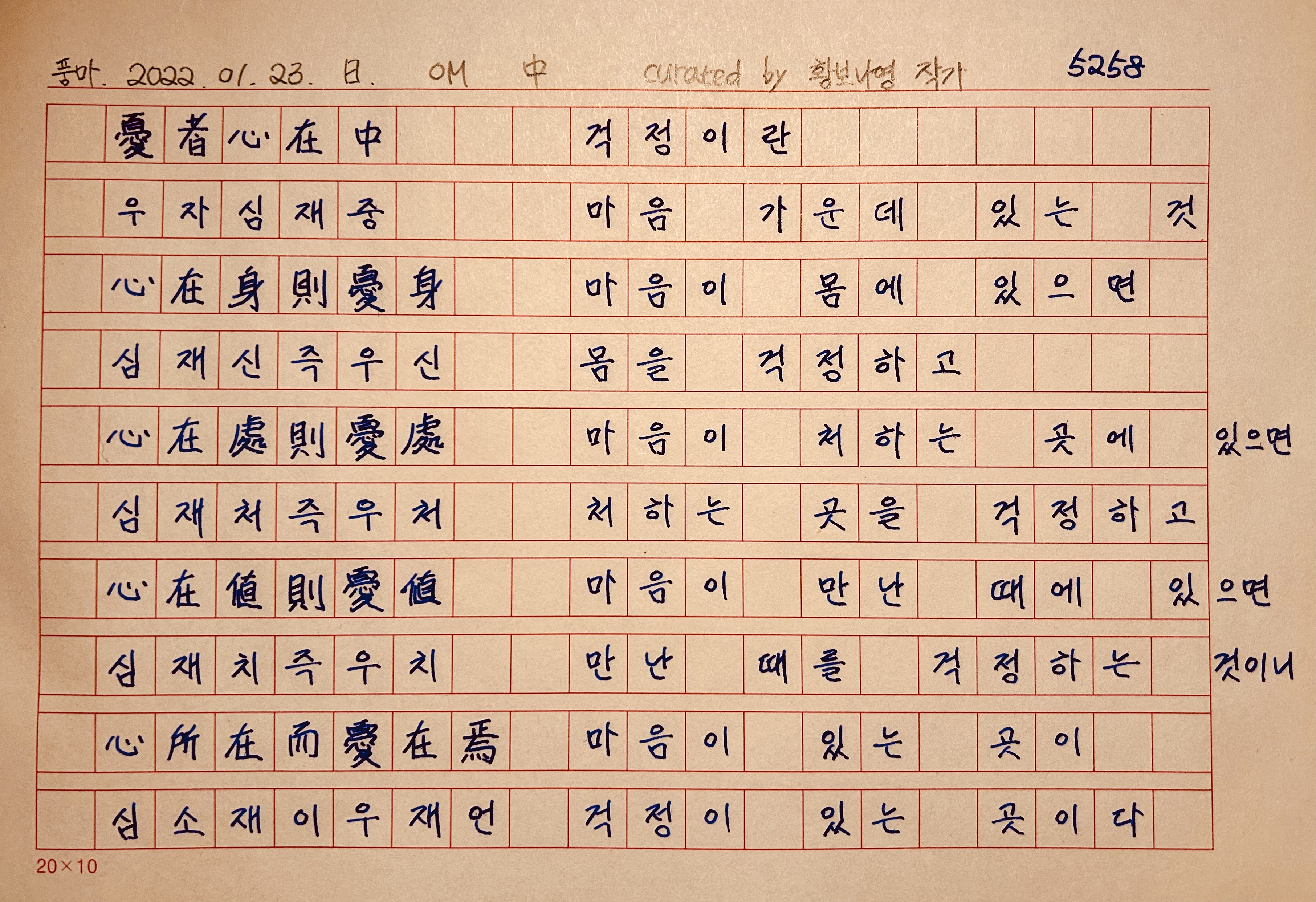 이 근심은 원래 마음 가운데 있지만, 마음을 지금 여기 내 몸에만 두지 말고 다른 곳으로 옮겨버리면